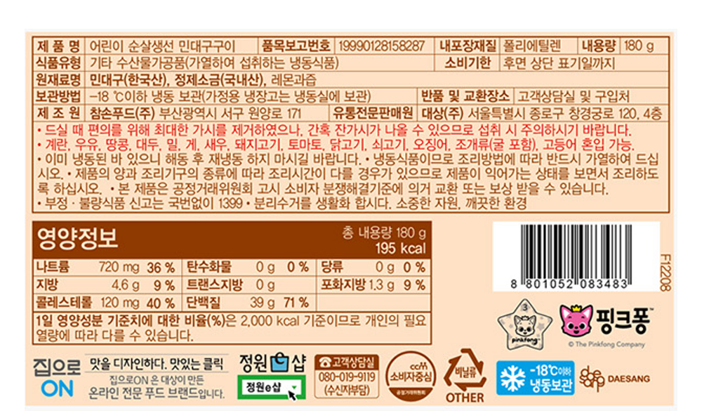 고소한 풍미가 일품인 민대구 구이예요. 아이들이 먹기 편하도록 신선한 민대구의 가시를 제거해 순살만 담았어요. 비린내가 적어 아이들이 즐기기에 좋답니다. 간편하게 조리해 우리 아이를 위한 생선 요리를 완성해보세요.