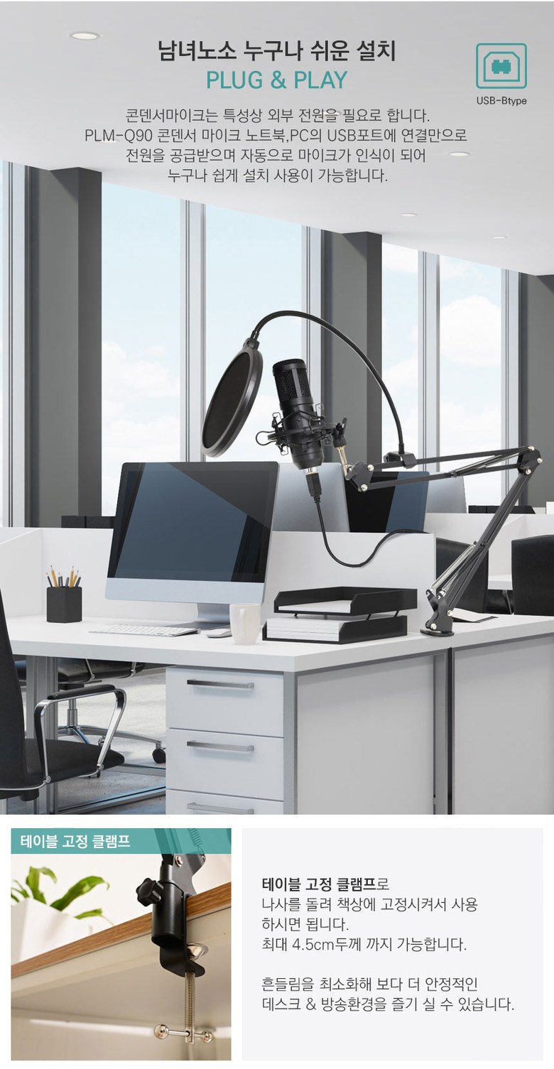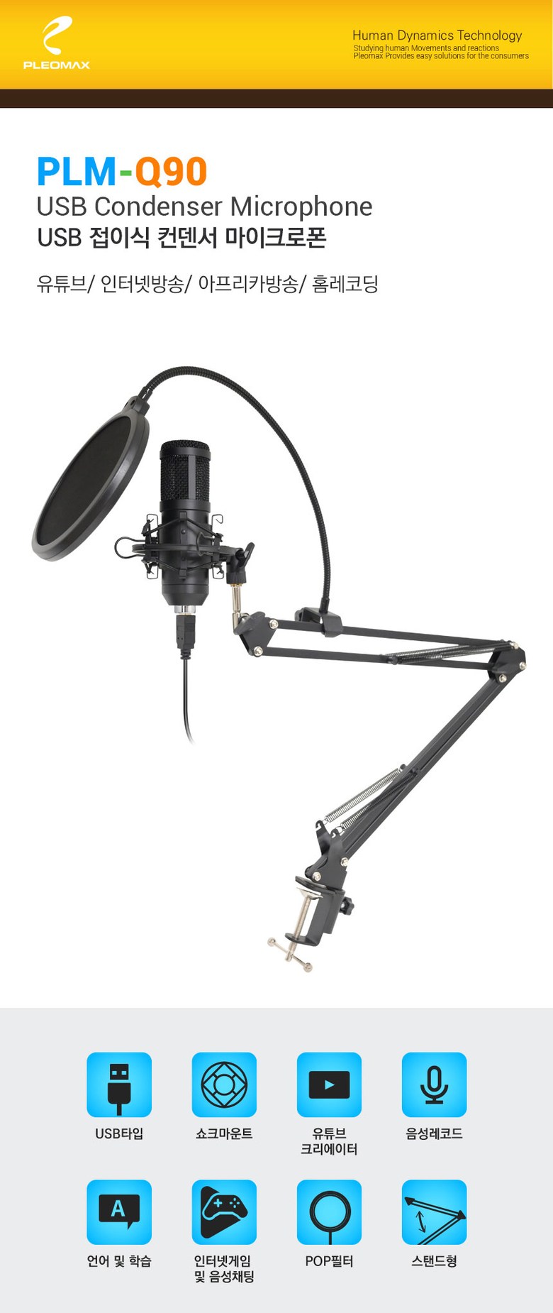 플레오맥스 PLM-Q90 스탠딩 컴퓨터 마이크 게이밍 게임 디스코드 노트북 방송 화상회의
