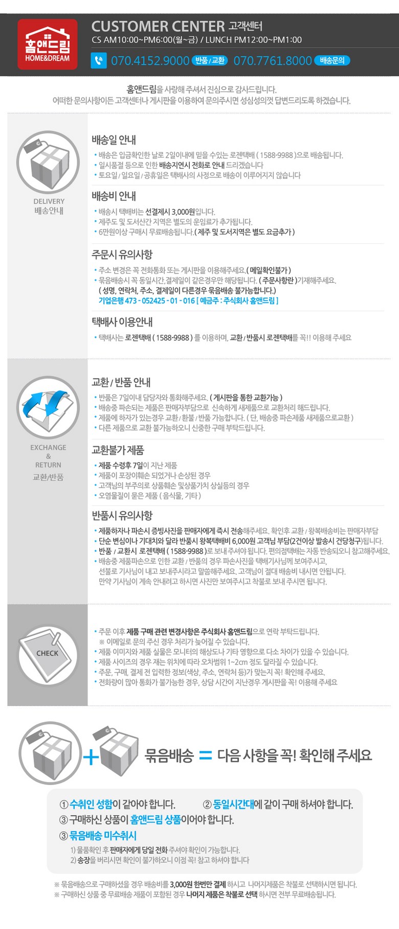 - ㆍ교환/반품에 관한 일반적인 사항은 판매자가 제시사항보다 관계법령이 우선합니다.