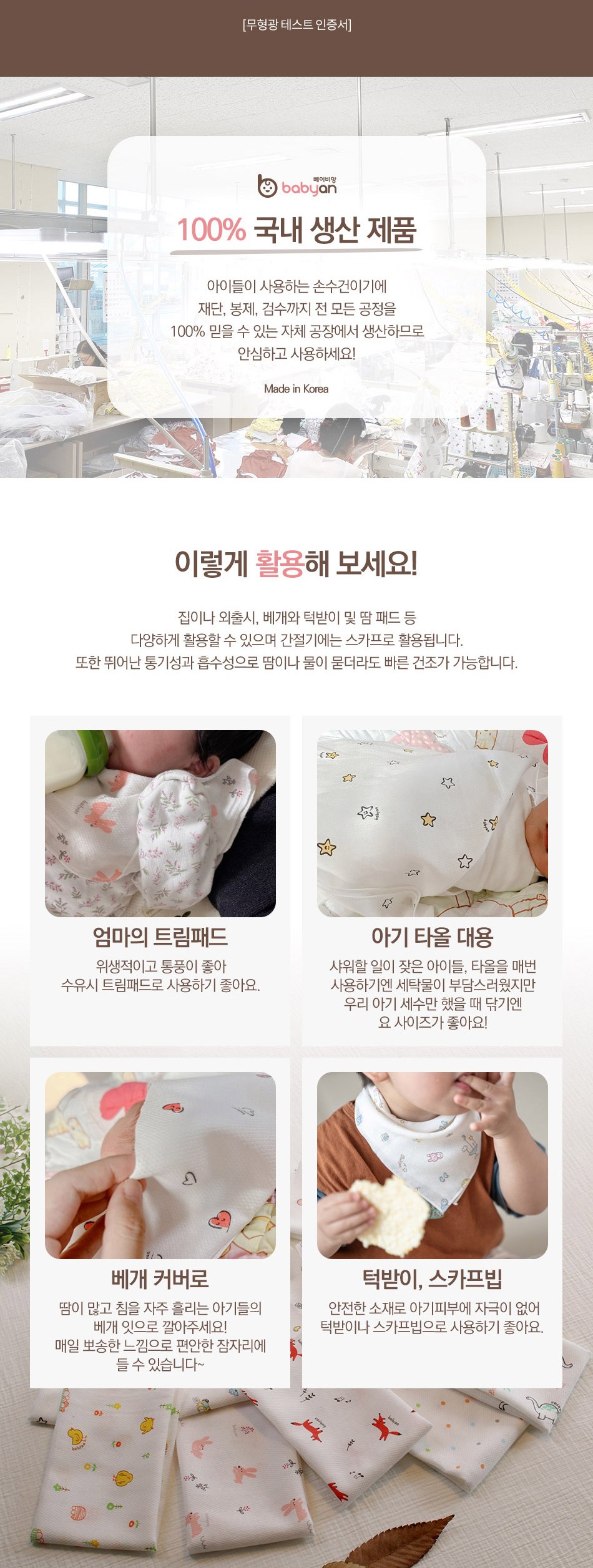 | 품명 및 모델명 | 순면 나염 엠보손수건 봄날토끼 | KC 인증정보 | CB015H0237-1001, CB015A0082-1001, CB015H0237-2007 |
