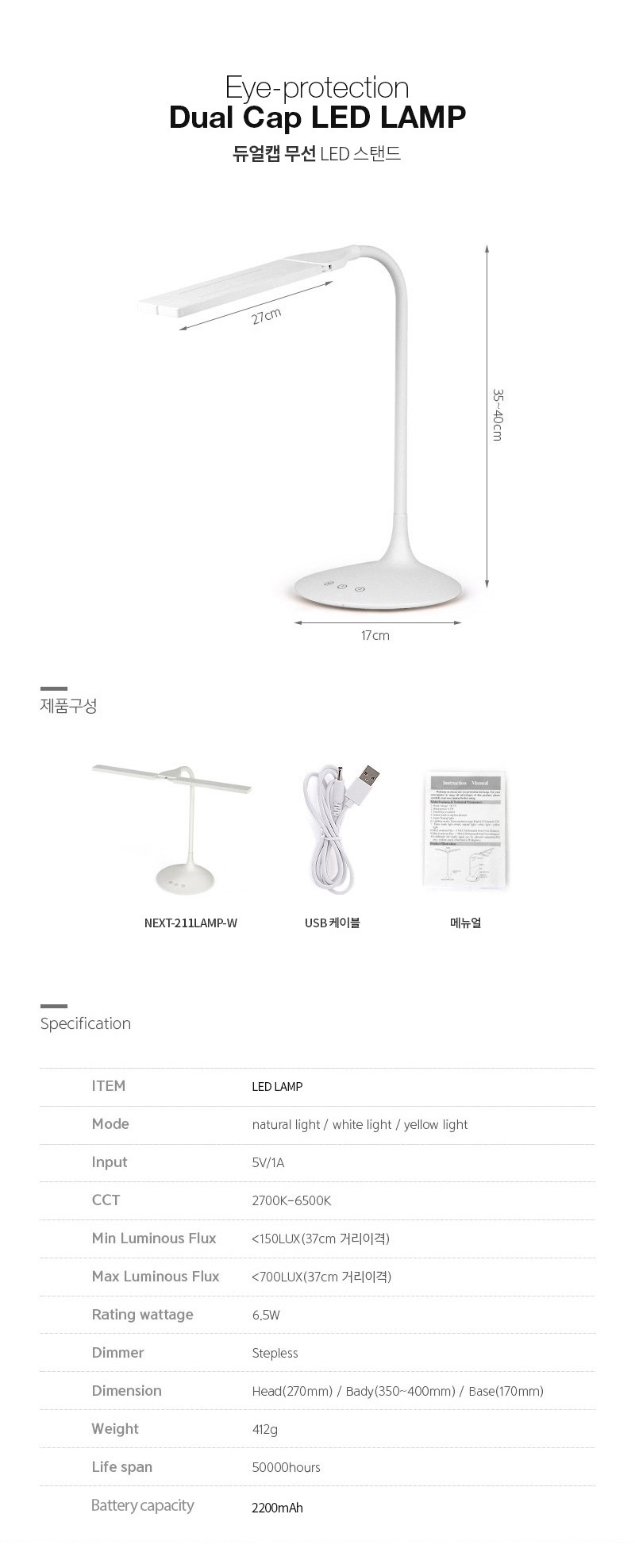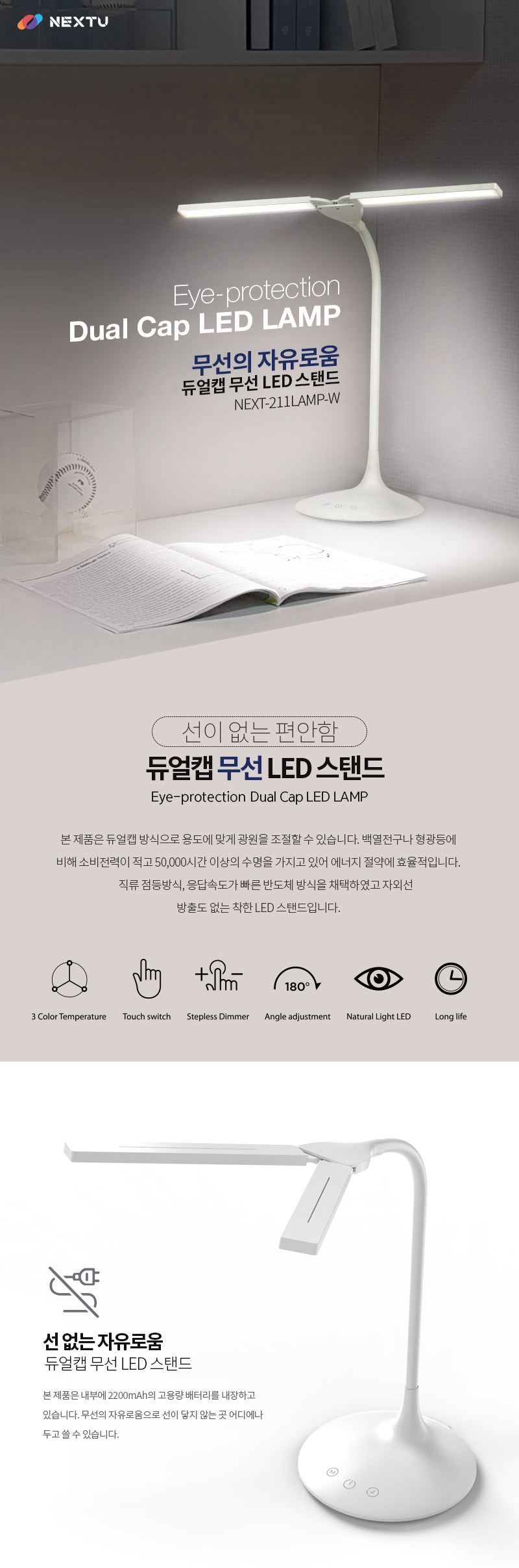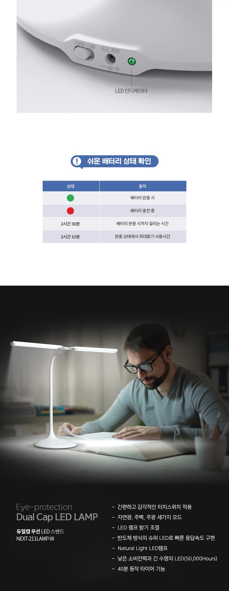 | 품명 및 모델명 | nextu 듀얼캡 무선 LED 스탠드 NEXT-211LAMP-W | KC 인증정보 | 본품 :MSIP-REI-NXT-NEXT-110LAMP / 전지 : YU10642-17002A |