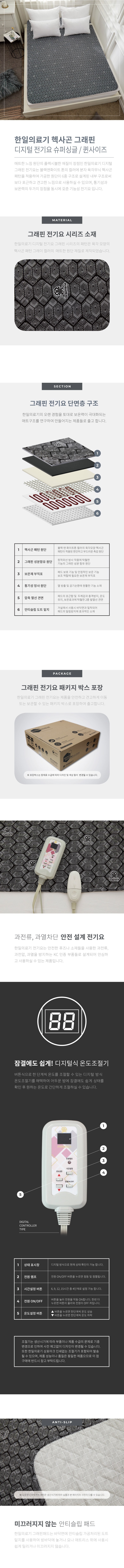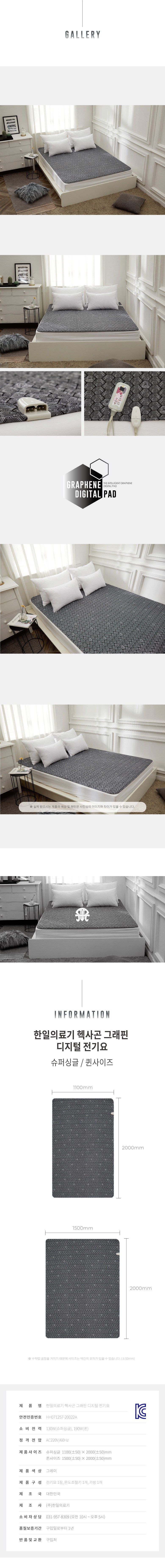 | 품명 및 모델명 | 한일의료기 헥사곤 그래핀 디지털 전기요 그레이 슈퍼싱글(1100 x 2000 mm) / HLD-303S | KC 인증정보 | HH071257-20022A, R-R-46A-HLD-203D |