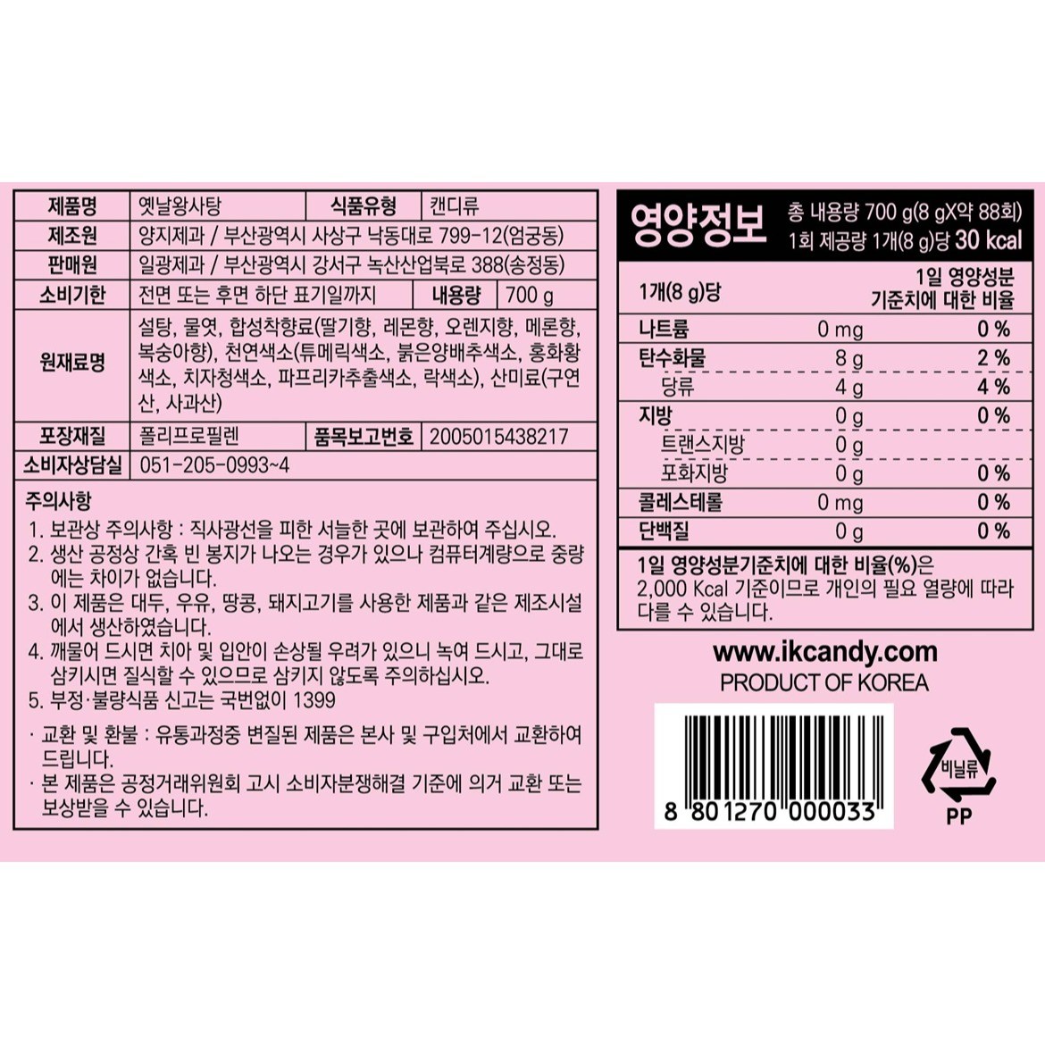 - 캔디류 맛/향: 과일
