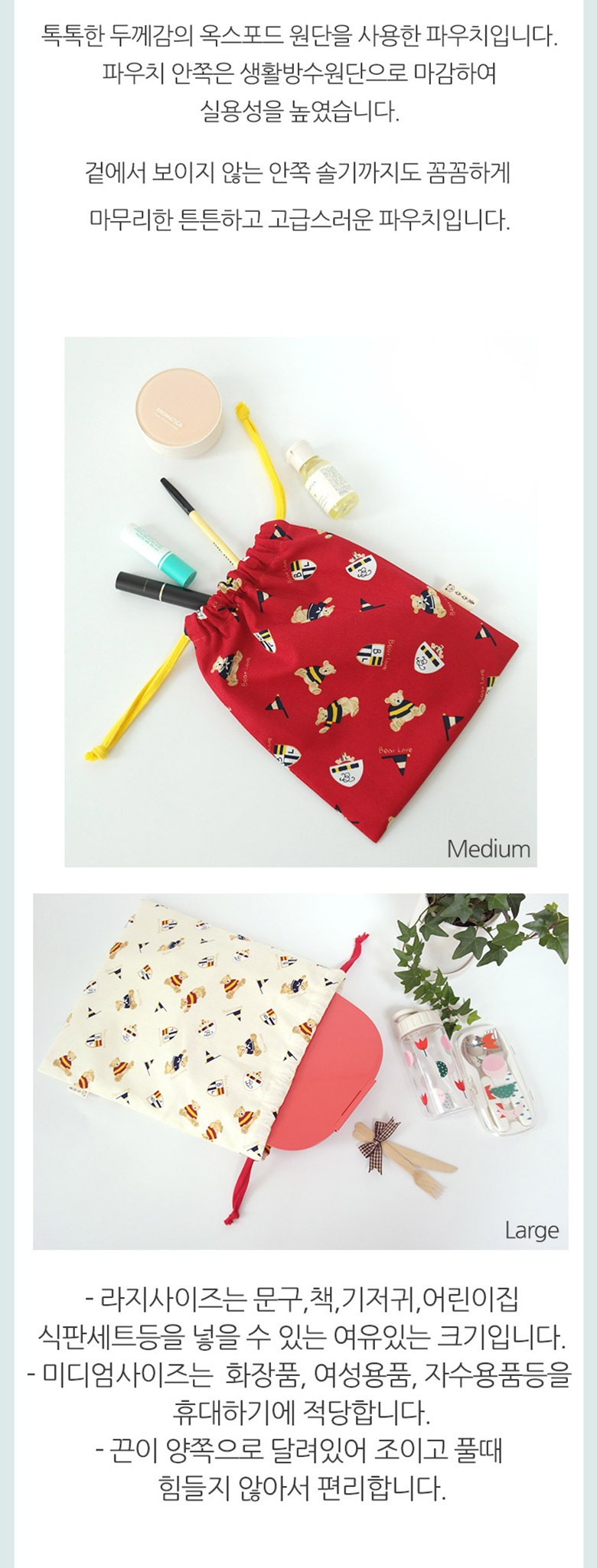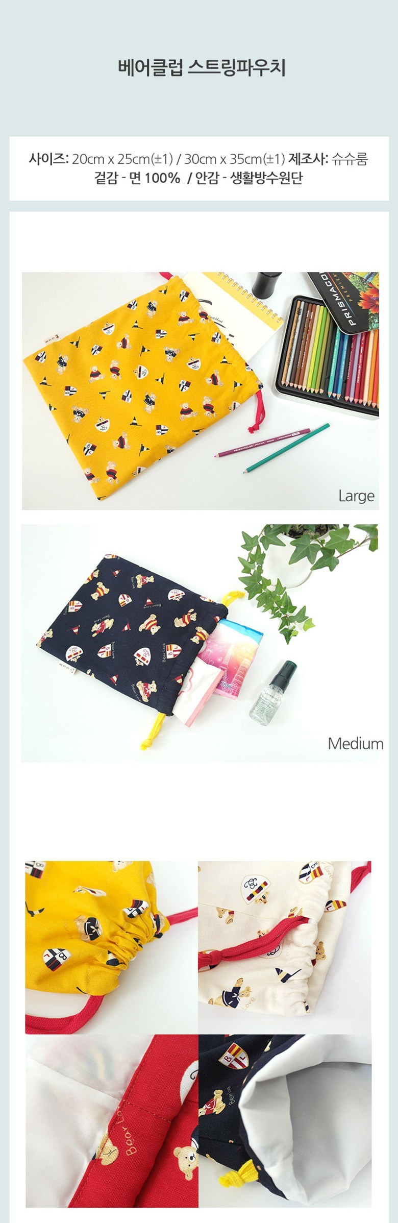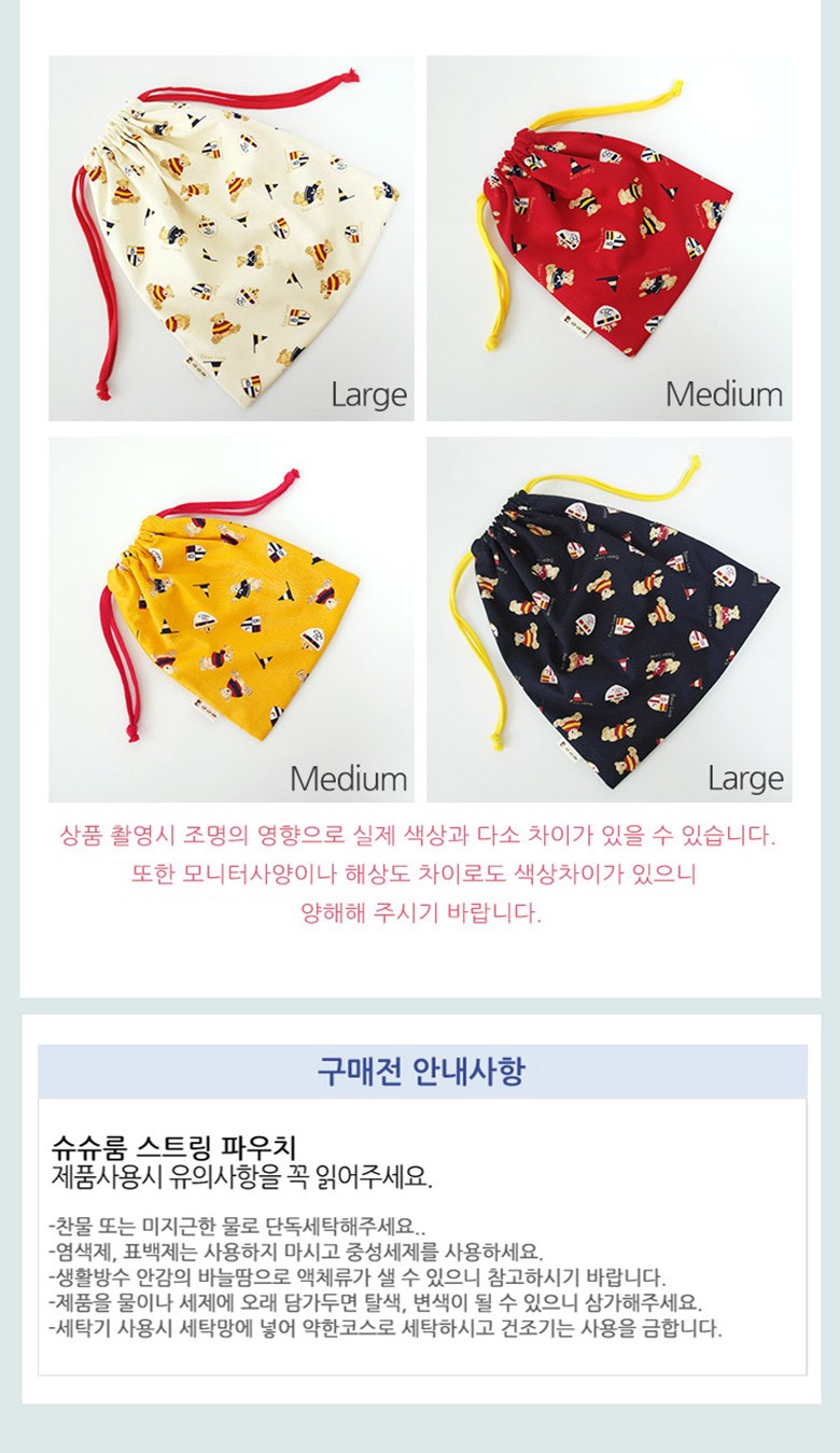 슈슈룸 베어클럽 방수안감 복조리 끈 스트링 파우치