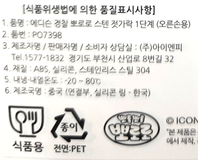 | 품명 및 모델명 | 에디슨 뽀로로 스텐 교정젓가락 | 재질 | 컨텐츠 참조 |