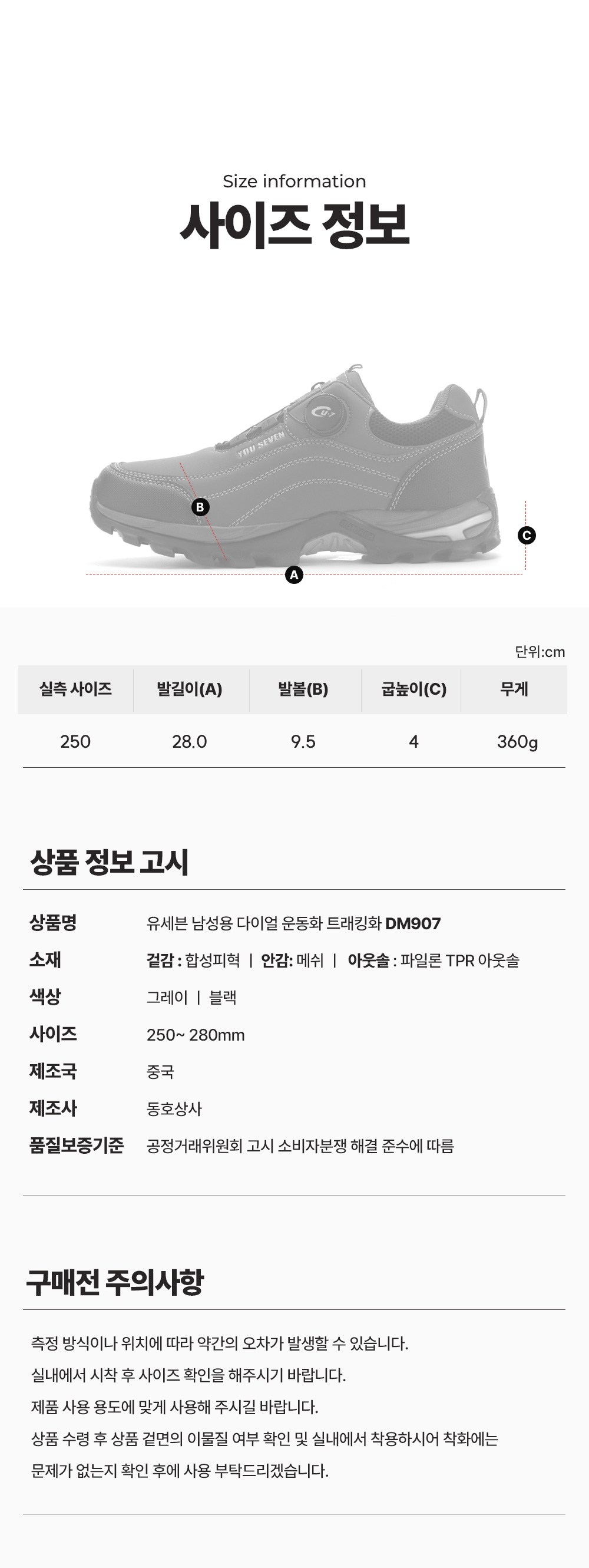 | 제조국 | 중국 | 취급시 주의사항 | 가급적 물세탁은 피해주시고, 장시간 직사광선에 노출 시 신발의 변형이 있을 수 있습니다. |