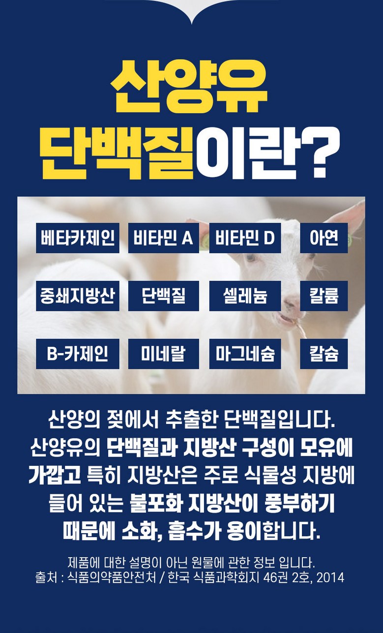 | 제품명 | 산양유단백분말 | 식품의 유형 | 상품 상세페이지 참조 |