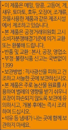 다만, 판매자의 제시사항이 관계법령보다 소비자에게 유리한 경우에는 판매자 제시사항이 적용됩니다.