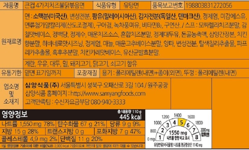 | 제품명 | 컨텐츠 참조 | 식품의 유형 | 컨텐츠 참조 |