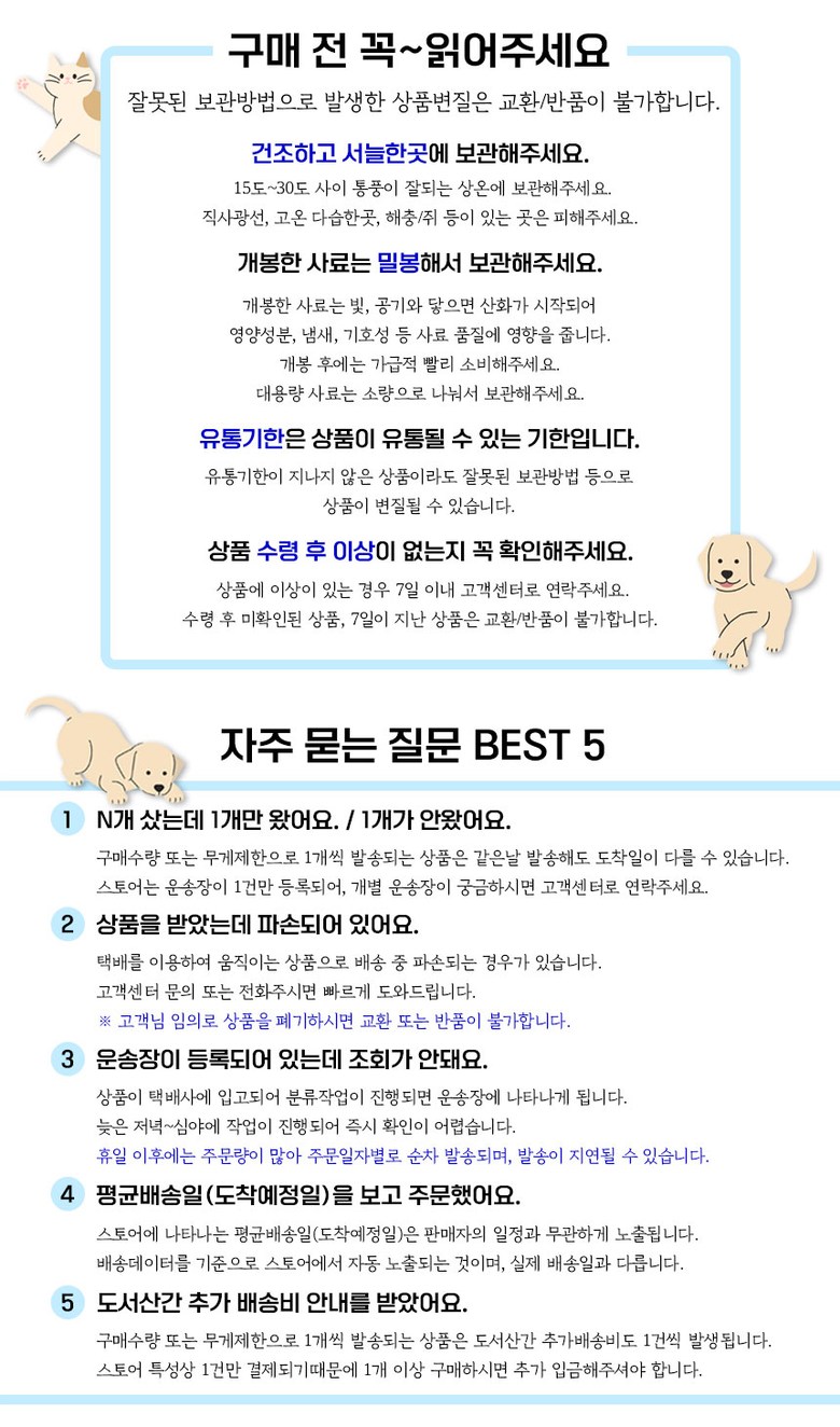- 상품문의 및 후기게시판을 통해 취소나 환불, 반품 등은 처리되지 않습니다.