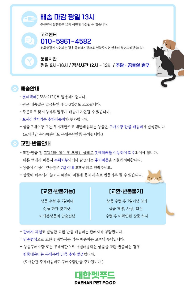 상호/대표자 | 대한 펫푸드 / 이승엽 | 사업장 소재지 | 경상북도 경주시 현곡면 등나무길 93-12 초록창고 |