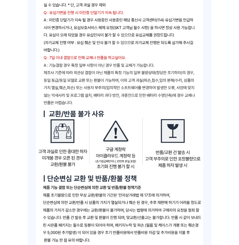 - ㆍ제조사의 사정 (신모델 출시 등) 및 부품 가격 변동 등에 의해 무료 교환/반품으로 요청하는 경우