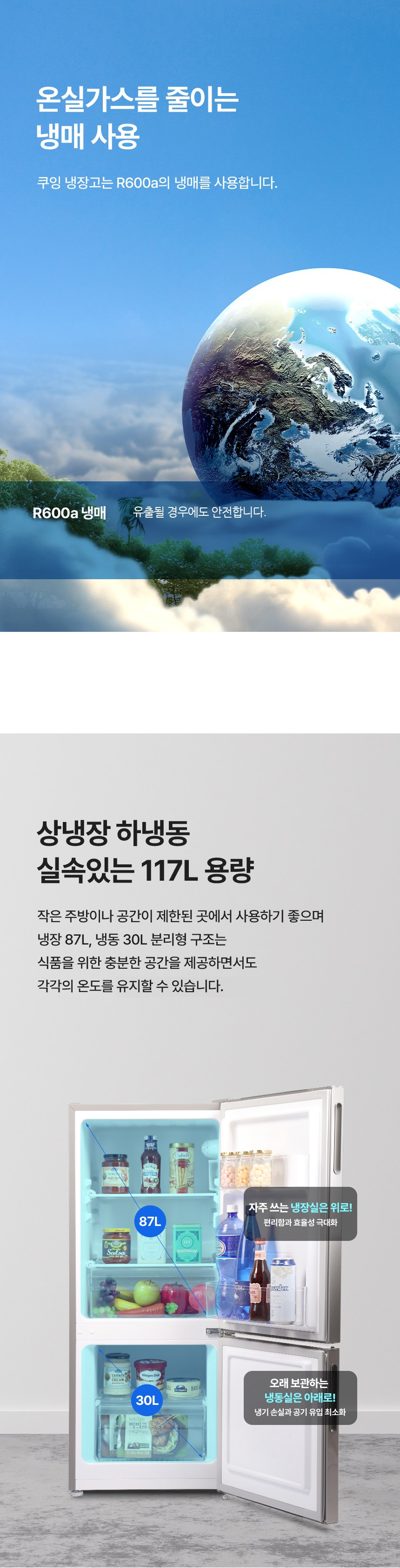 - 냉장/냉동칸 구조: 상냉장 하냉동