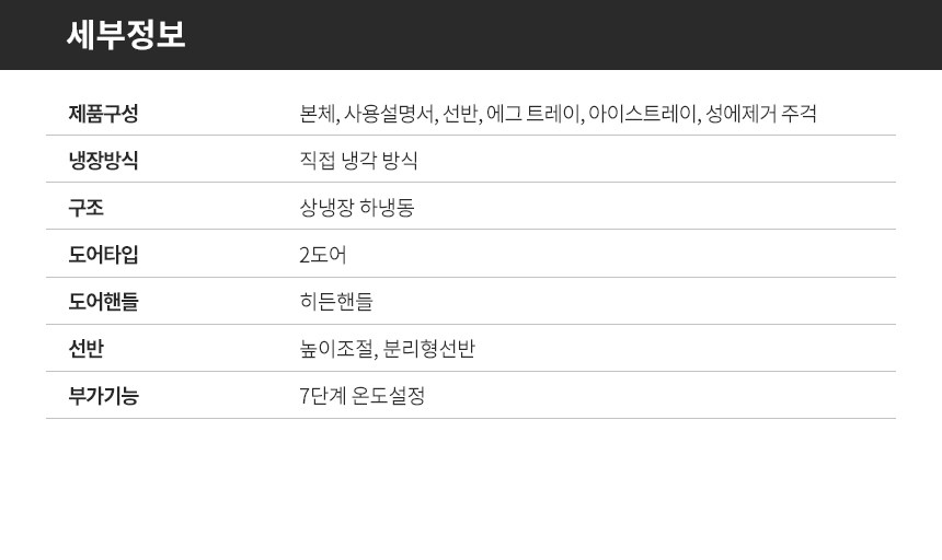 - 구성품: 에그트레이 1p + 아이스트레이 1p + 성에제거 주걱 1p