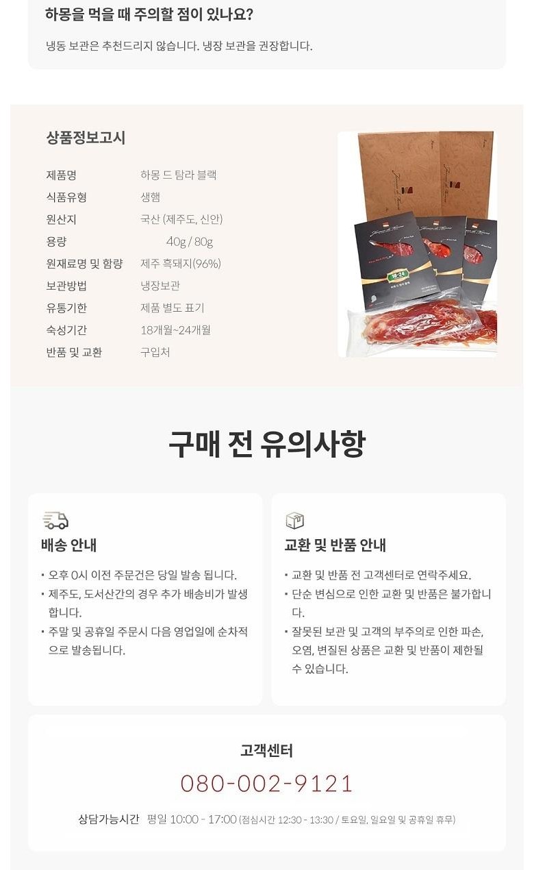 | 품목 또는 명칭 | 하몽 드 탐라 블랙 | 포장단위별 내용물의 용량(중량),수량,크기 | 40g, 80g |