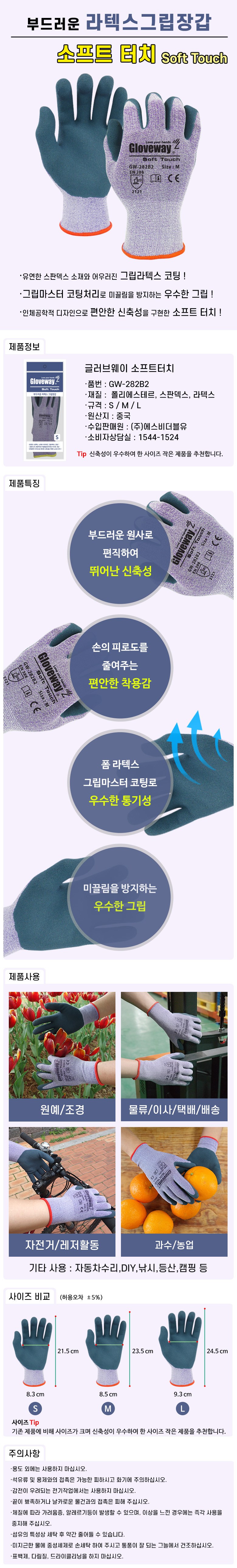 | 품명 및 모델명 | 글러브웨이 소프트터치 라텍스장갑 좌우세트 M | 인증/허가 사항 | 해당없음 |