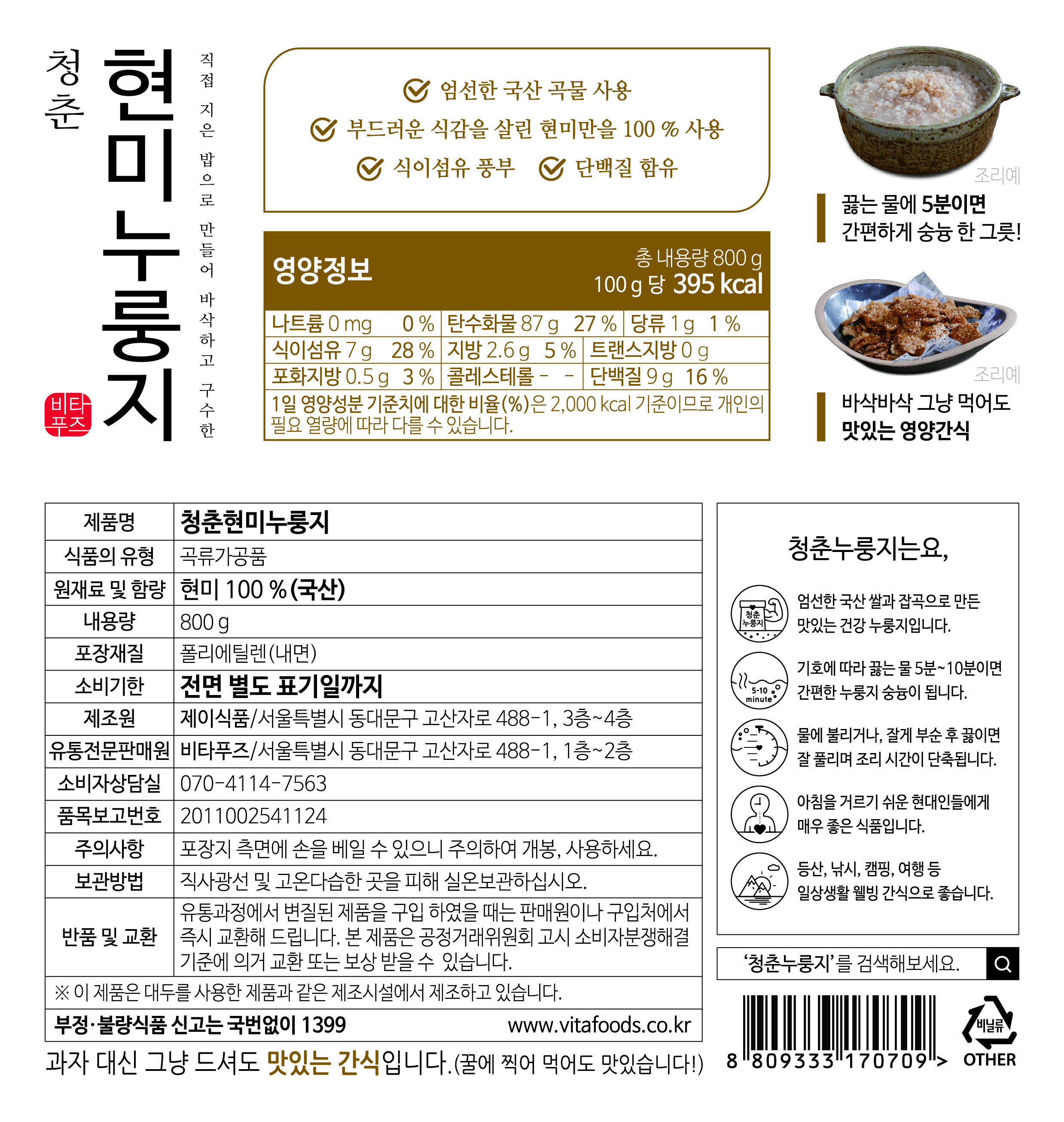 | 포장단위별 내용물의 용량(중량), 수량 | 800g x 3개 | 원재료명 및 함량 | 컨텐츠 참조 |