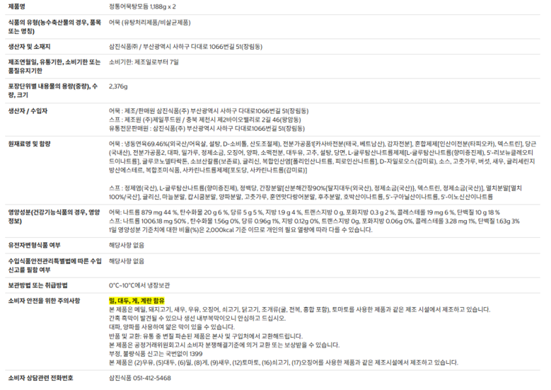 | 제조연월일, 소비기한 또는 품질유지기한 | 상품 상세페이지 참조 | 세부 품목군별 표시사항 | 상품 상세페이지 참조 |