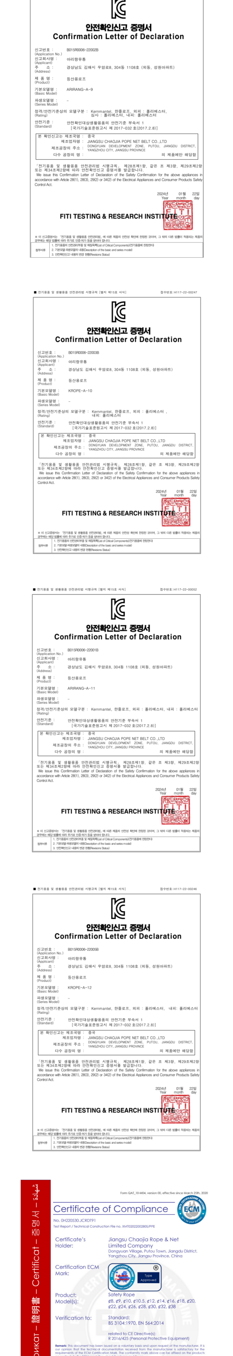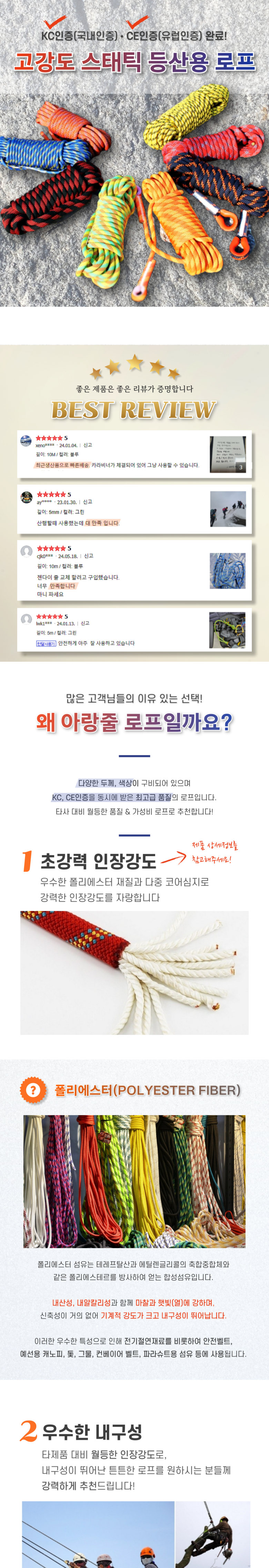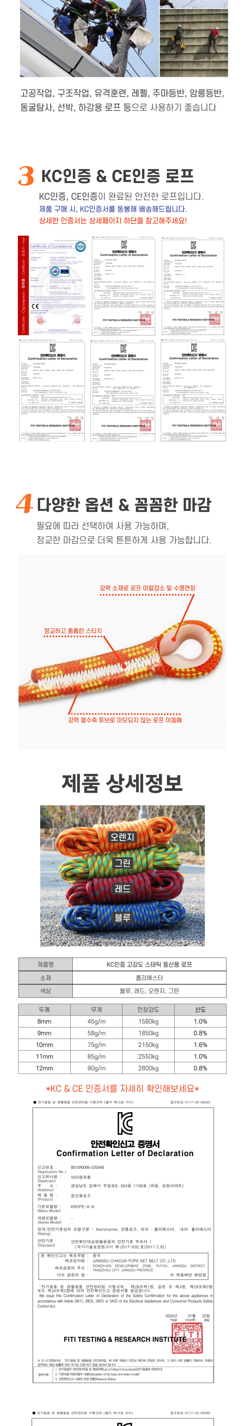 | 품명 및 모델명 | 10mm 강력 다용도 등산로프 | 인증/허가 사항 | B015R0006-21001 |
