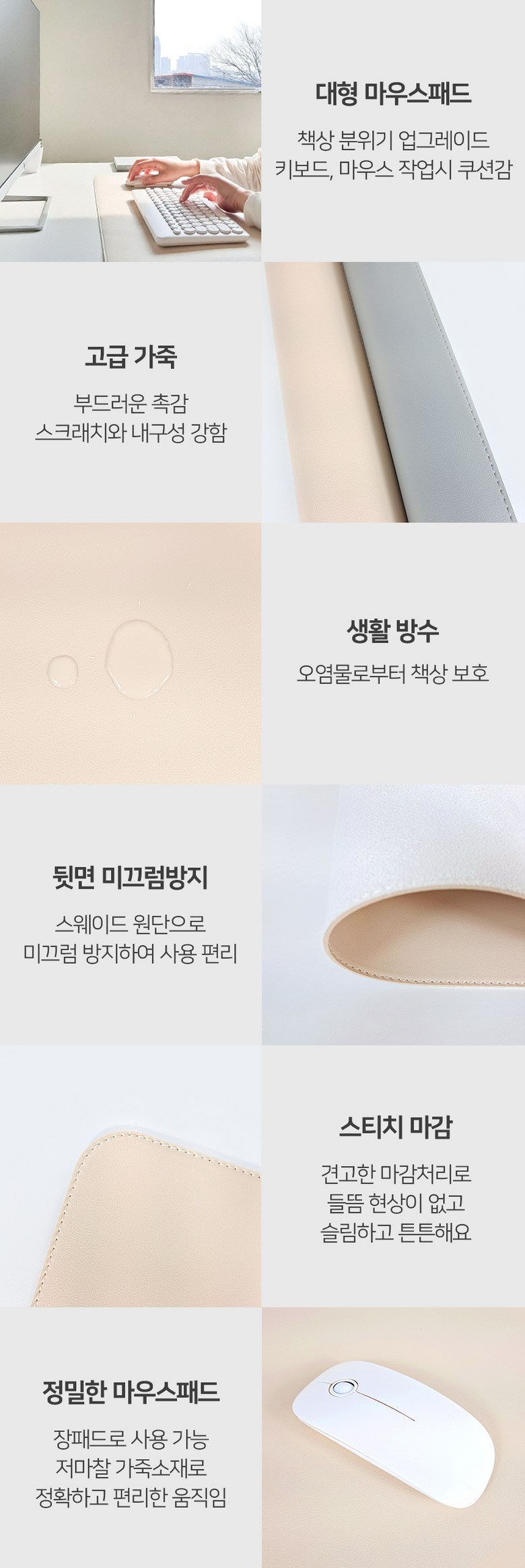 - 문구 매트 재질: 인조가죽