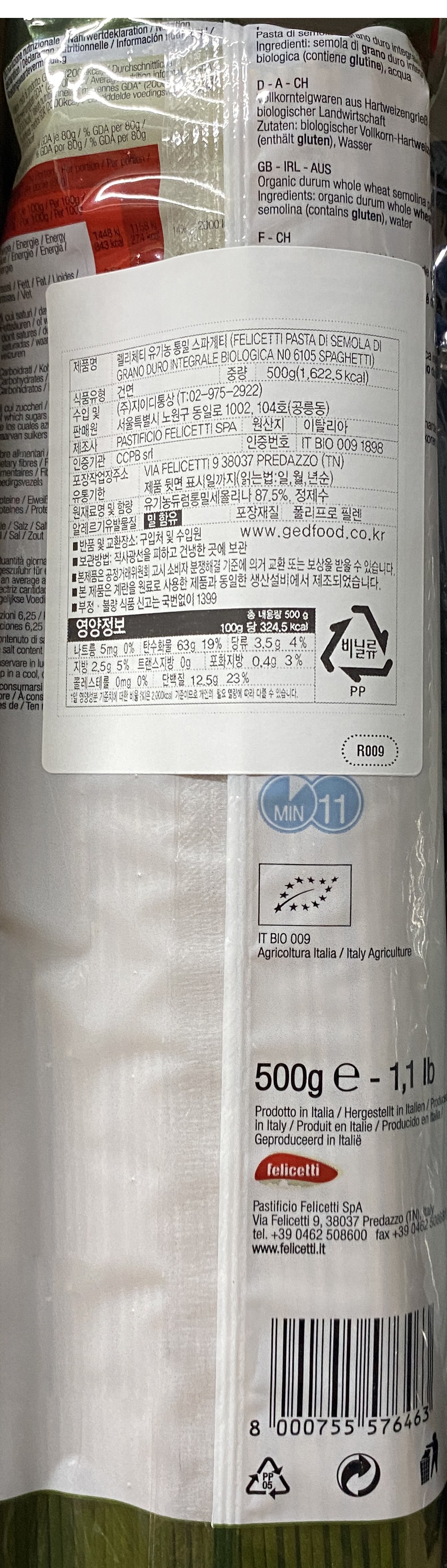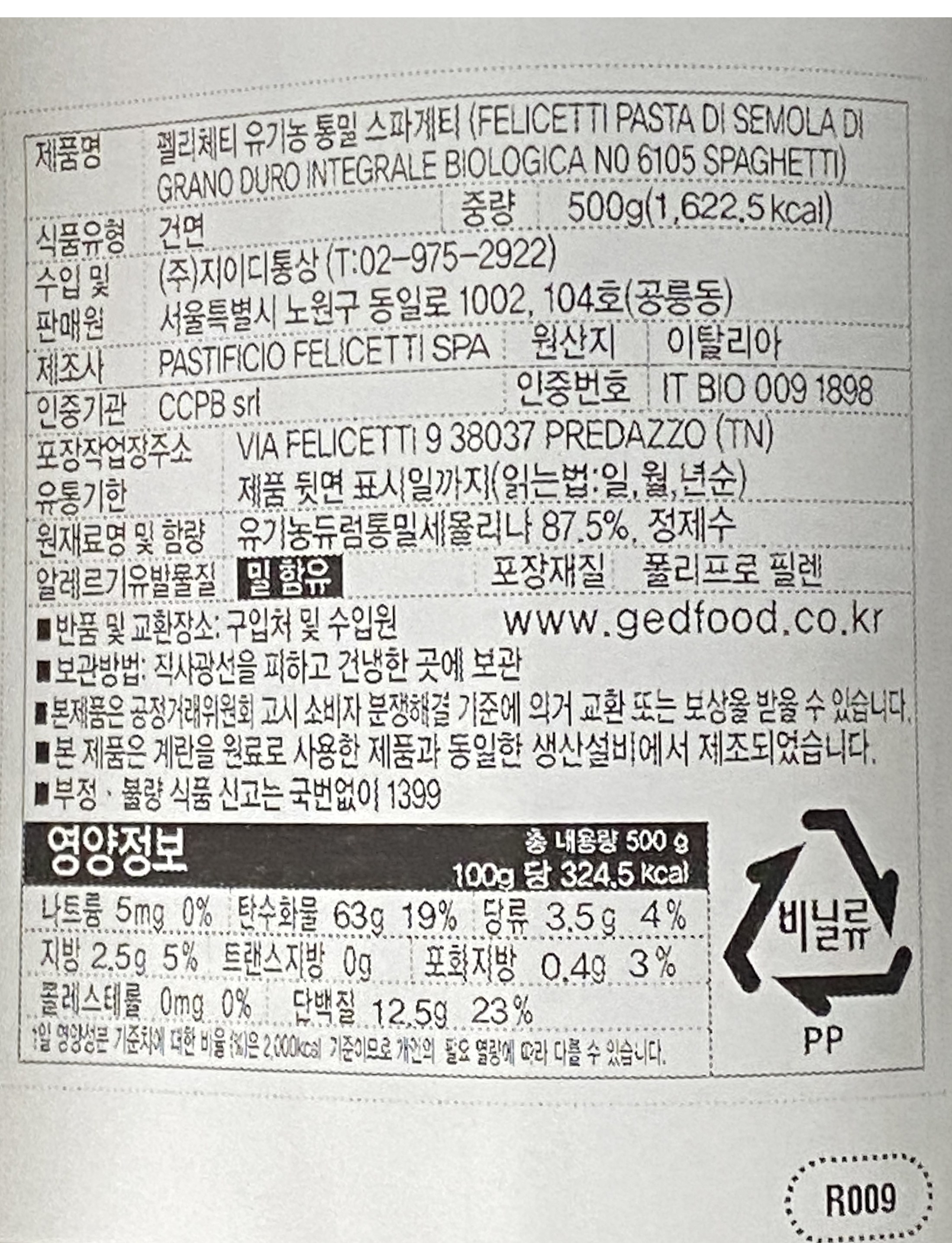 | 생산자 및 소재지 | 생산자: PASTIFICIO FELICETTI SRL/ 수입자: 지이디통상/ 제조국: 이탈리아 | 제조연월일, 소비기한 또는 품질유지기한 | 소비기한(또는 유통기한) : 2026년 03월 30일 이거나 그 이후인 상품<br />제조년월일 : 2023년 04월 16일 이후인 제조상품 |