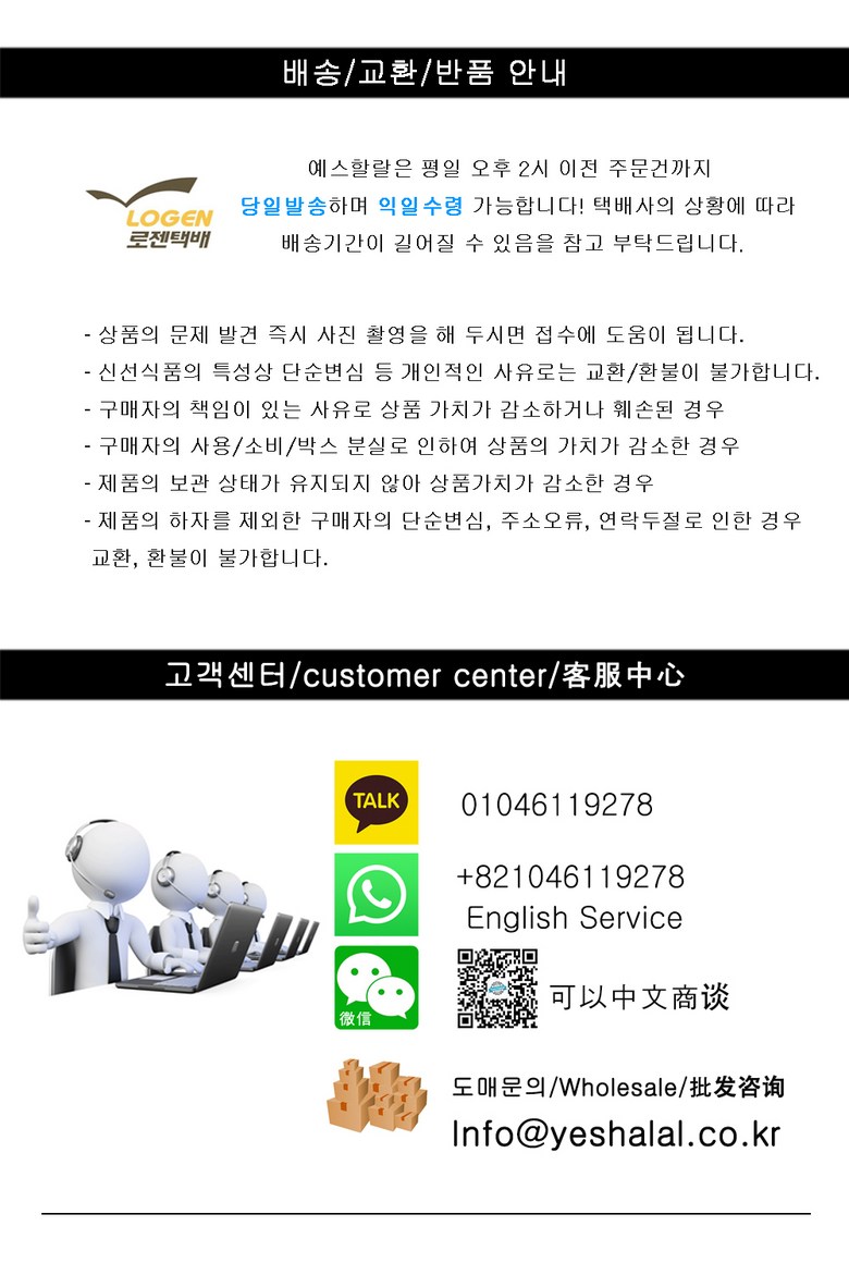 - ㆍ모니터 해상도의 차이로 인해 색상이나 이미지가 실제와 달라, 고객이 단순 변심으로 교환/반품을 무료로 요청하는 경우