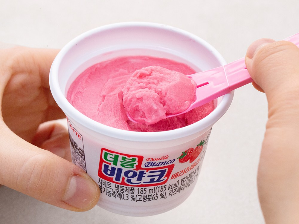 부드러운 식감과 새콤 달콤한 맛의 더블 비얀코 베리베리예요. 달콤한 딸기농축액의 풍미와 상큼한 라즈베리시럽이 어우러져 다채로운 맛을 선사하죠. 입안에서 사르르 녹는 듯한 식감의 더블 비얀코 베리베리로 시원한 디저트의 매력을 만끽해보세요.