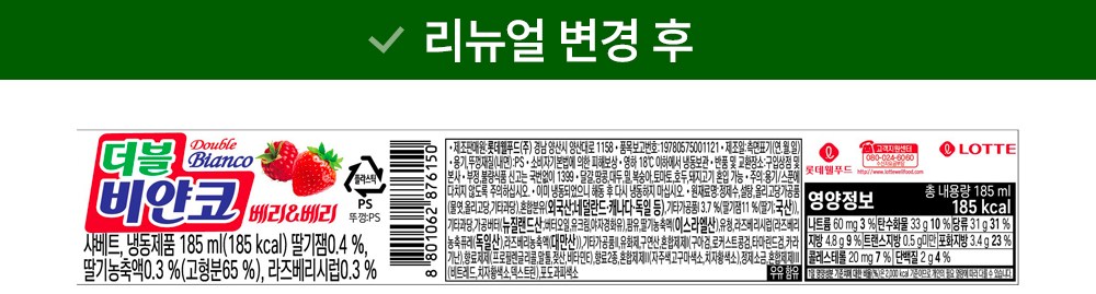 | 제품명 | 더블비얀코 베리베리 | 식품의 유형 | 컨텐츠 참조 |