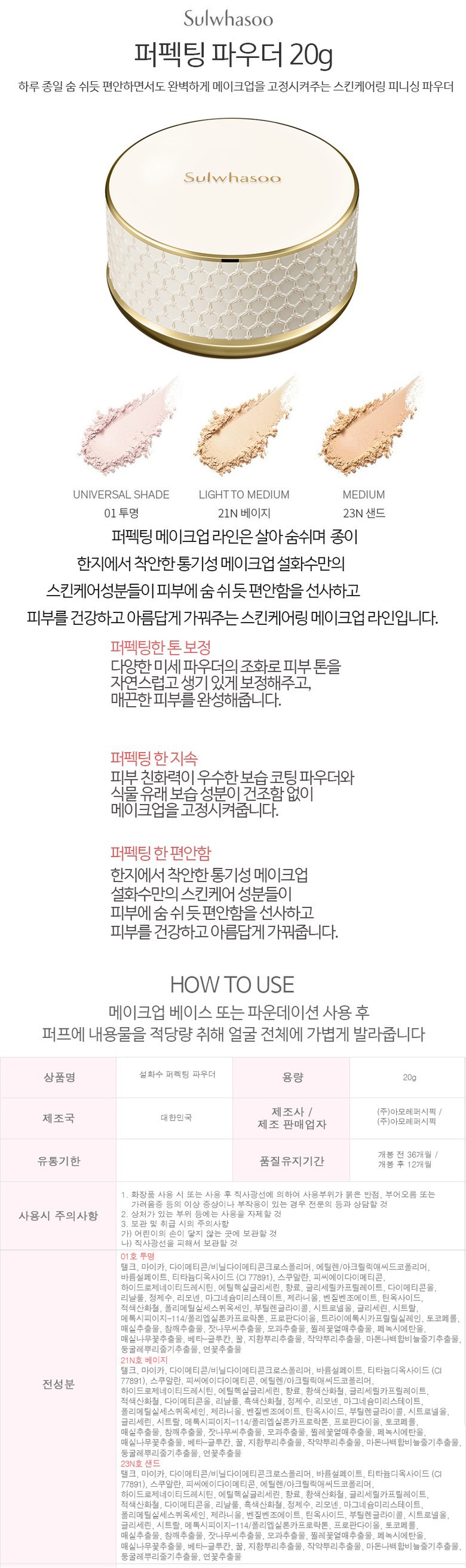 | 화장품제조업자, 화장품책임판매업자 및 맞춤형화장품판매업자 | (주)아모레퍼시픽 | 제조국 | 대한민국 |