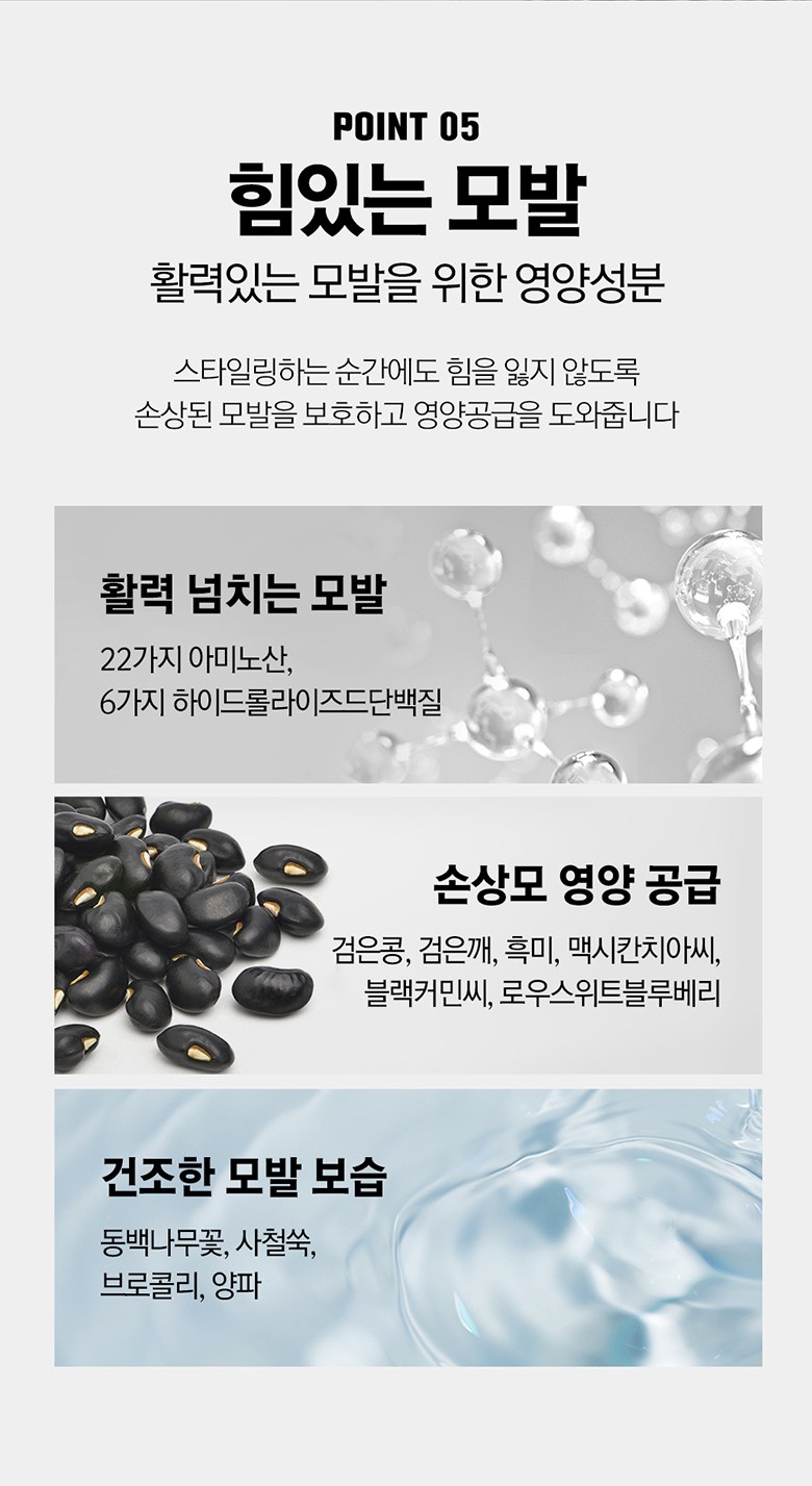 | 용량(중량) | 100ml | 제품 주요 사양 | 모든 모발용 |