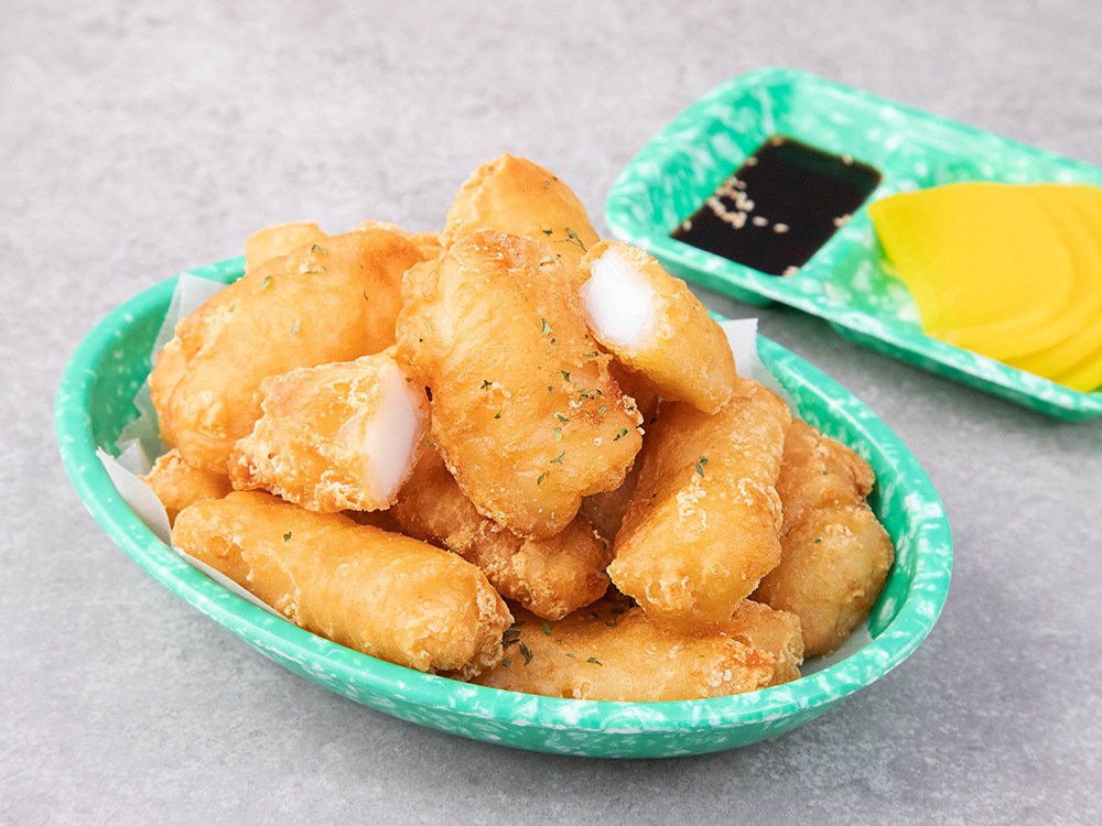 뭉툭하고 짤막하게 잘라 딱 먹기 좋은 오징어튀김이에요. 통통하고 쫄깃쫄깃한 오징어와 소리부터 바삭한 튀김옷의 조화가 생생한 감칠맛을 자랑하죠. 고소하게 튀겨주면 모두의 입맛을 사로잡을 오징어튀김. 든든한 간식이나 안주로 활용해보세요.