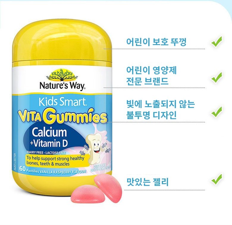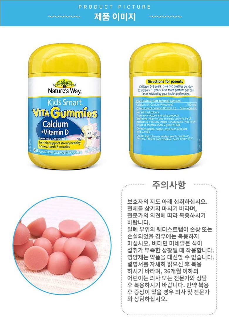 | 제품명 | 키즈 스마트 비타 구미스 칼슘 + 비타민 D 바닐라 라즈베리맛 패스틸 | 식품의 유형 | 기타가공식품 |