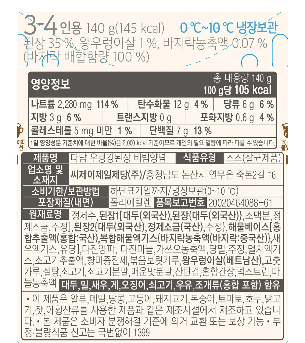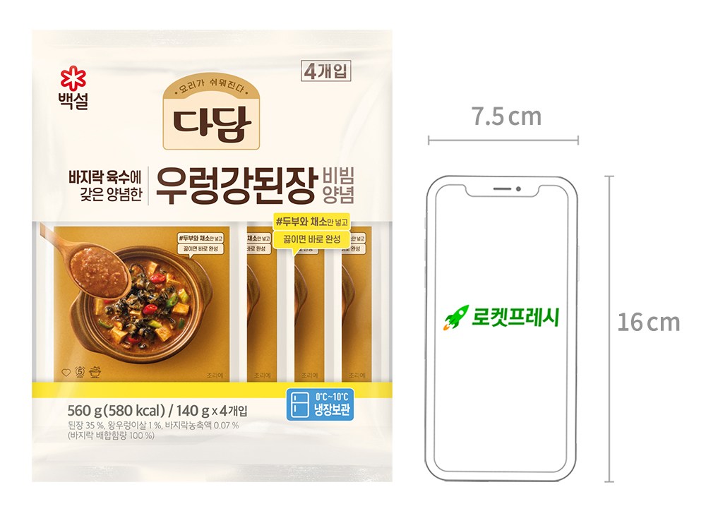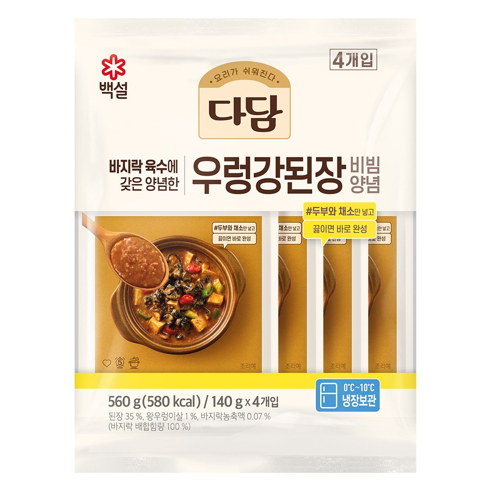 구수한 풍미를 자랑하는 된장찌개 양념이에요. 직접 재료를 준비하고 간을 맞출 필요가 없어 간편하답니다. 맛이 진하고 깊은 것은 물론, 쫄깃쫄깃하고 탱탱한 식감도 매력적이죠. 두부, 채소 등을 준비해, 입맛 돋우는 우렁강된장을 만들어보세요.