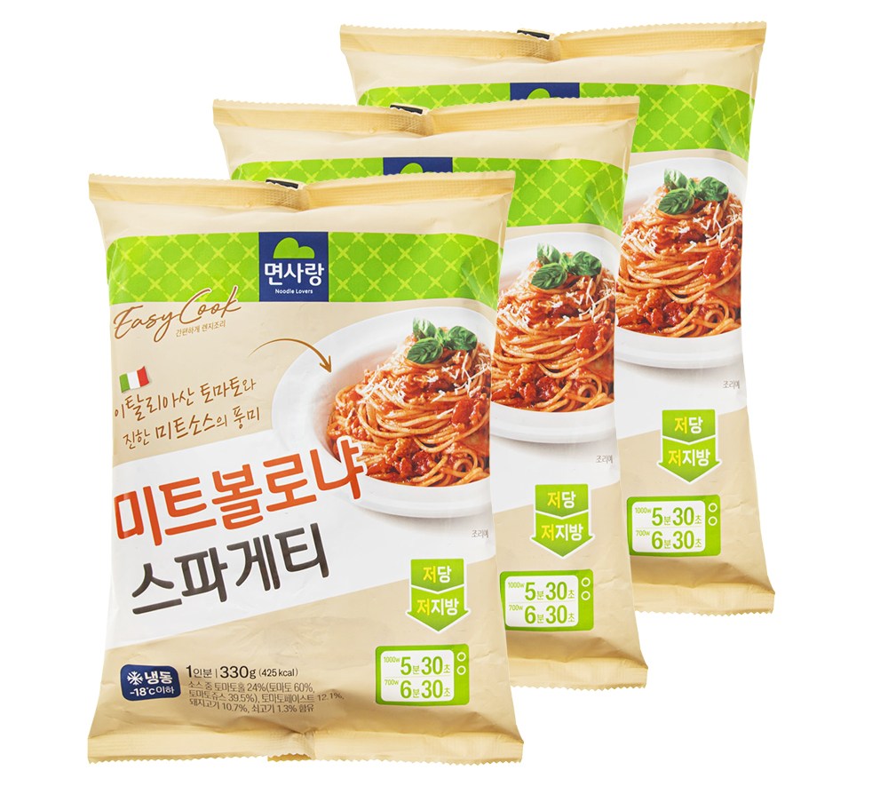 촉촉하고 부드러운 면발을 즐길 수 있는 미트볼로냐 스파게티예요. 토마토홀과 미트소스가 어우러진 소스는 새콤하면서도 고소한 풍미를 입안 가득 선사하죠. 잘게 다진 돼지고기와 쇠고기, 양파 등이 씹는 재미까지 더해준답니다. 전자레인지로 조리가 가능하니, 간편하게 데워 근사한 스파게티를 뚝딱 완성해보세요.