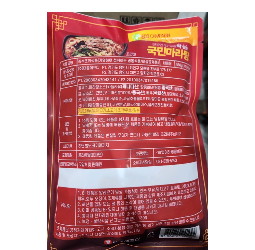 | 제품명 | 국민마라탕 | 식품의 유형 | 컨텐츠참조 |