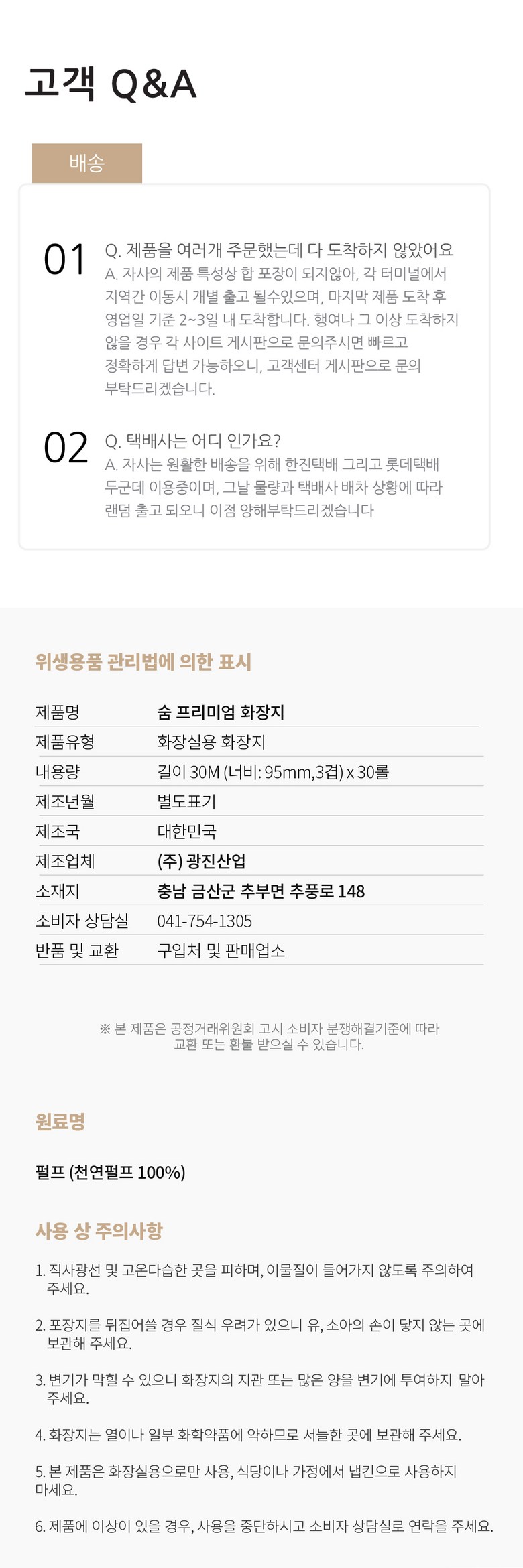 - 상품문의 및 후기게시판을 통해 취소나 환불, 반품 등은 처리되지 않습니다.