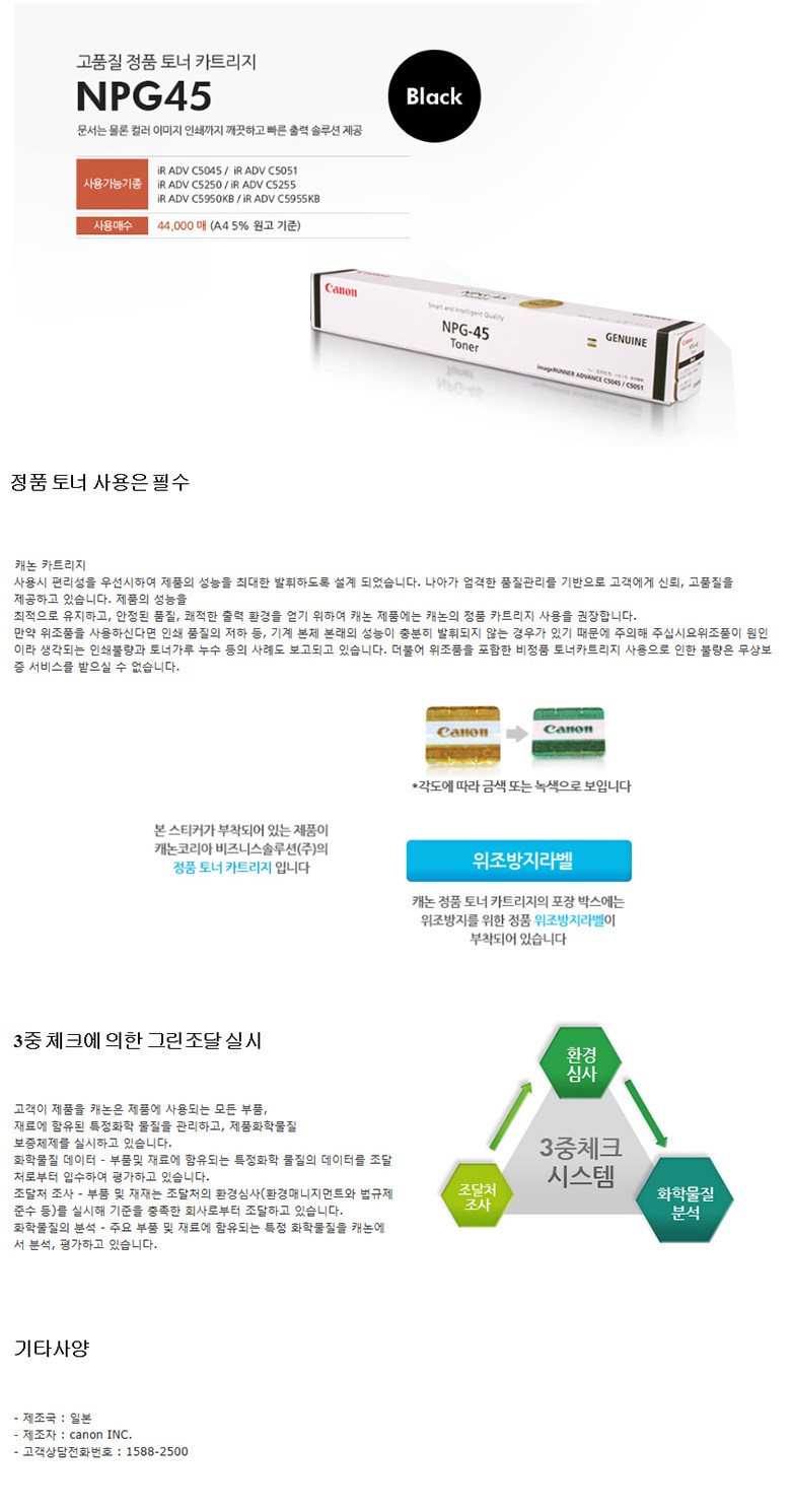 캐논 고품질 정품 토너 카트리지 NPG-45