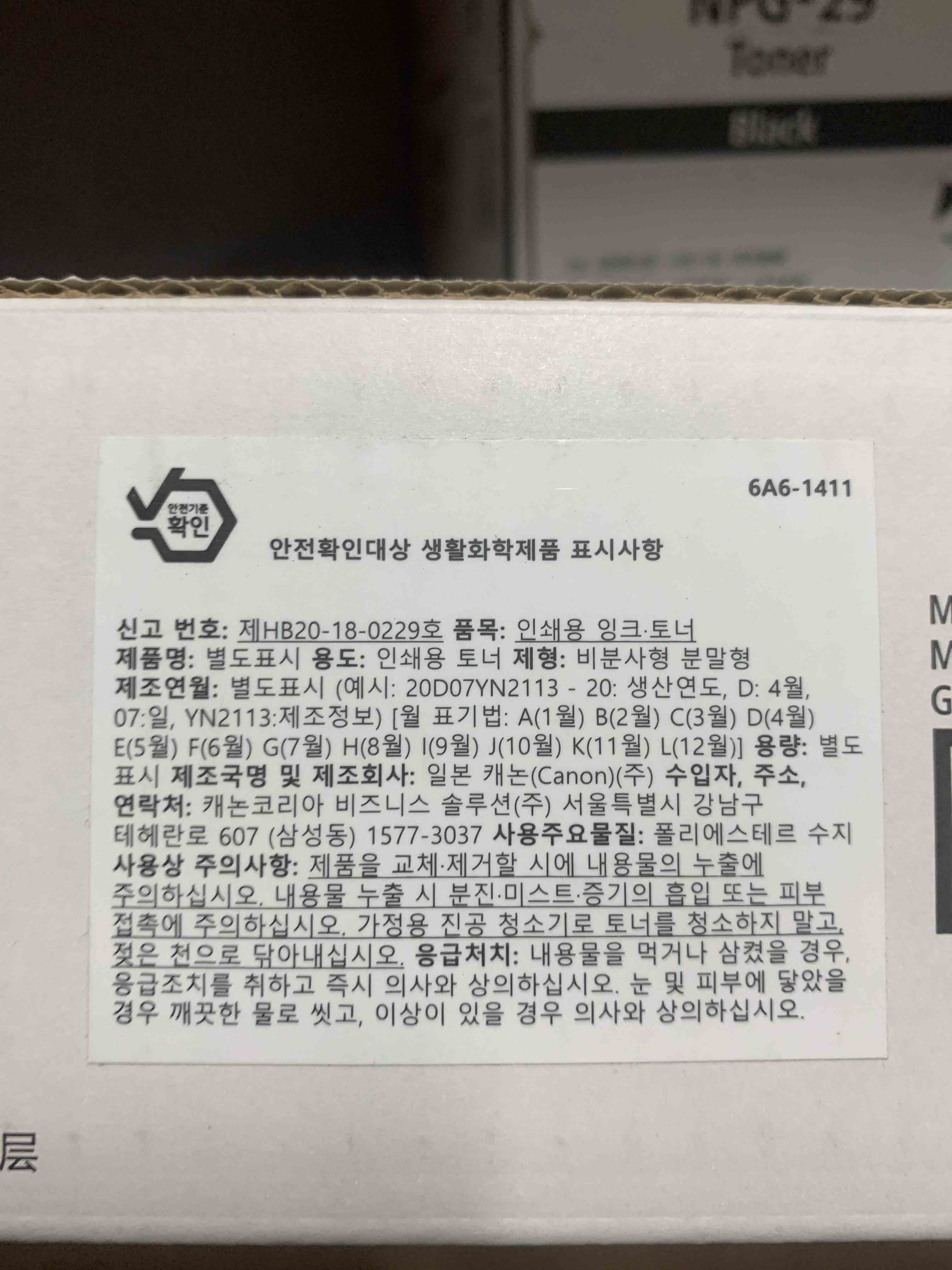 | 품목 및 제품명 | 인쇄용 잉크, 토너 | 용도(표백제의 경우 계열을 함께표시) 및 제형 | 인쇄용 토너 / 비분사형 분말형 |