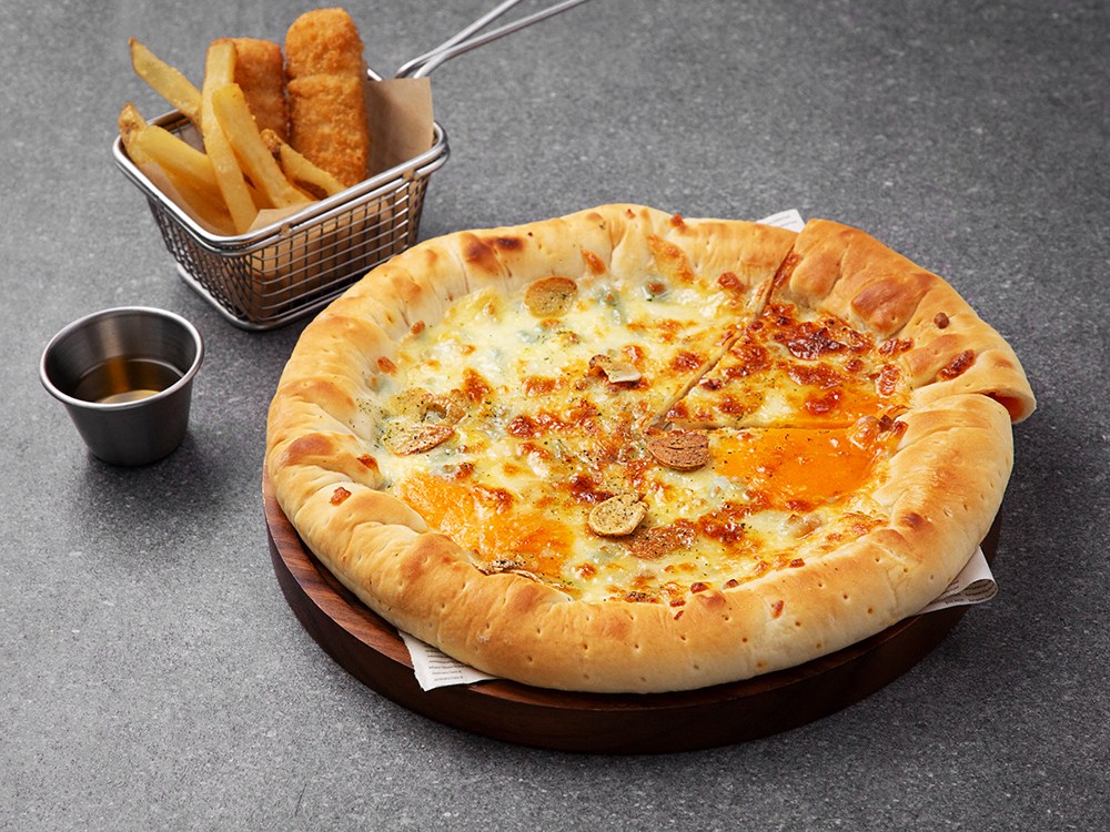 쫄깃한 치즈크러스트 도우에 풍미 짙은 치즈를 가득 올린 갈릭 고르곤졸라 피자예요. 짭조름하면서도 고소한 고르곤졸라 치즈와 바삭한 갈릭칩이 맛있게 어우러진답니다. 간편하게 조리하여 재료들이 선사하는 조화로운 맛을 음미해보세요.