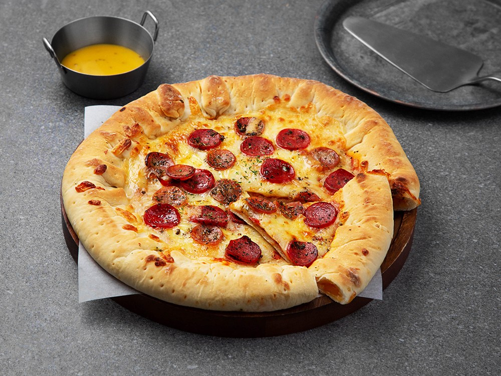 쫄깃한 치즈크러스트 도우에 고소한 킬바사 소시지와 페페로니를 가득 올린 페페로니 디럭스 피자예요. 짭조름하면서도 고소한 풍미의 소시지와 새콤 달콤한 토마토소스가 맛있게 어우러진답니다. 간편하게 조리하여 재료들이 선사하는 조화로운 맛을 음미해보세요.