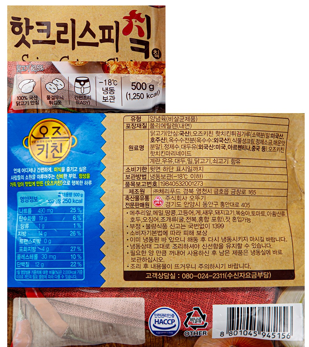 | 제품명 | 오즈키친 핫크리스피치킨 | 식품의 유형 | 컨텐츠참조 |