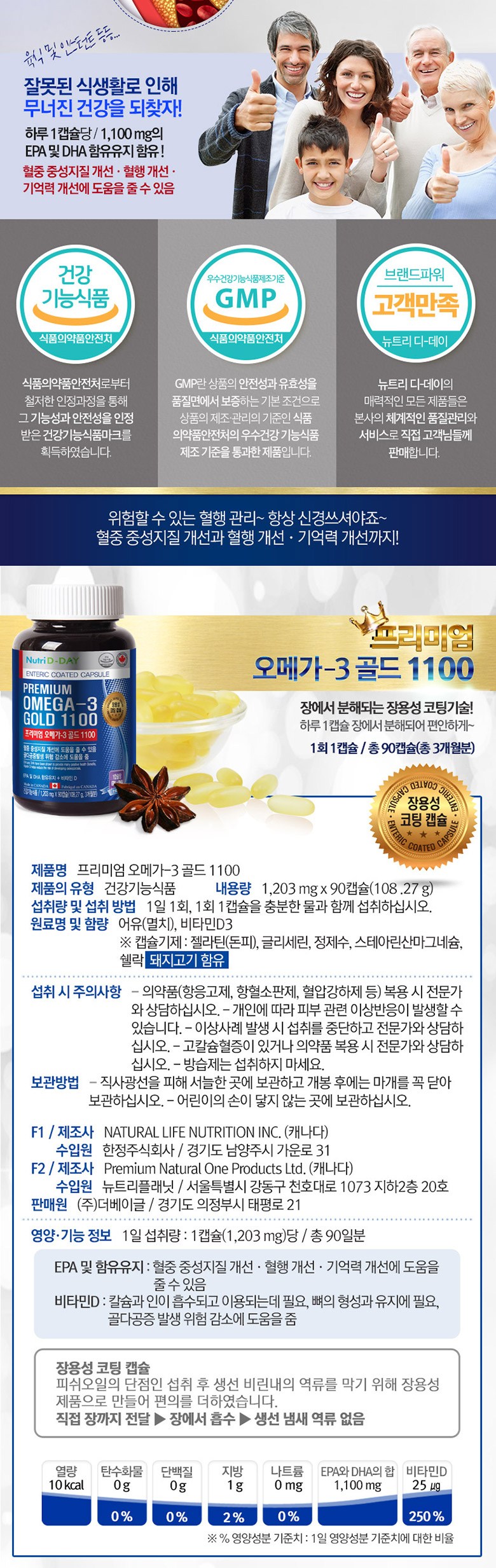 | 제품명 | 프리미엄 오메가3 골드 1100 | 제조업소의 명칭과 소재지 | 컨텐츠 참조 |