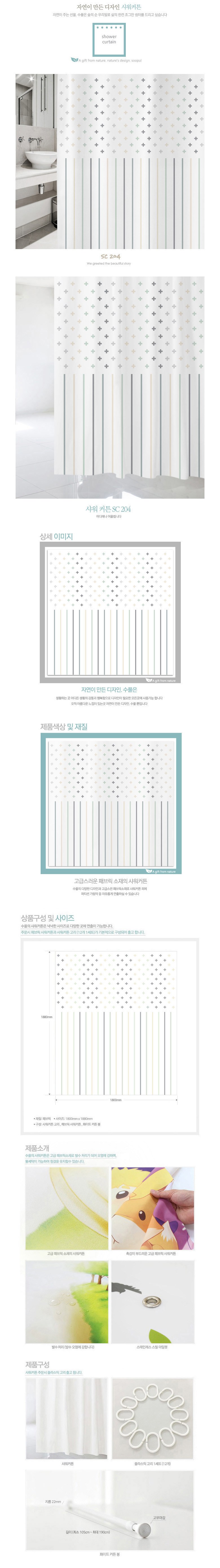 수풀 샤워 커튼 북유럽 스타일 sc204 + 플라스틱 고리 12p + 화이트 커튼봉 풀세트