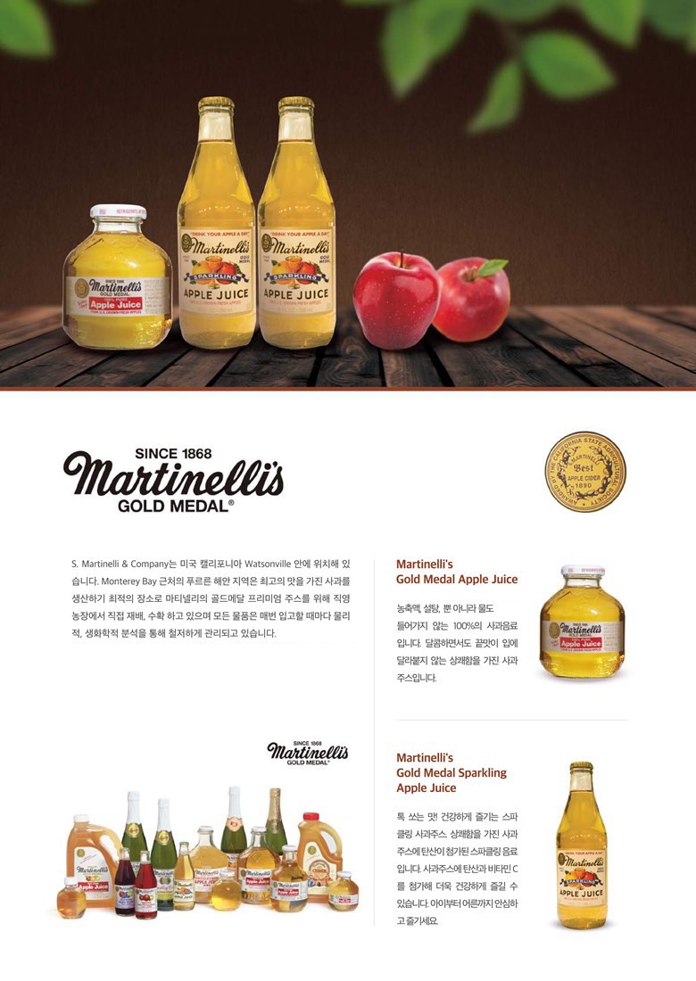 | 제품명 | 골드 메달 스파클링 애플주스 (사과함량 99.3%) | 식품의 유형 | 혼합음료 |