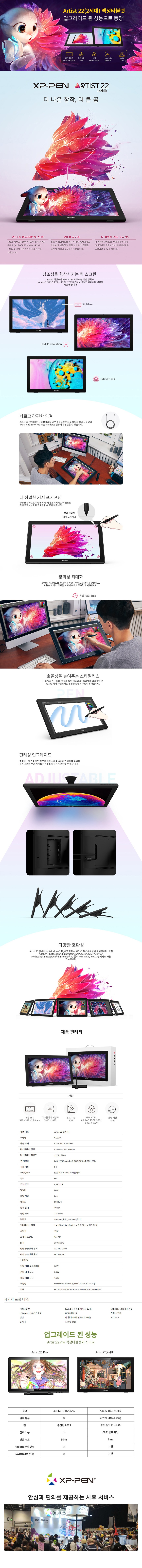 | 품명 및 모델명 | 엑스피펜 ARTIST 22 2세대 액정 타블렛 / CD220F | KC 인증정보 | 본품: R-R-UG5-CD220F / 어댑터 : SU10551-16001 |