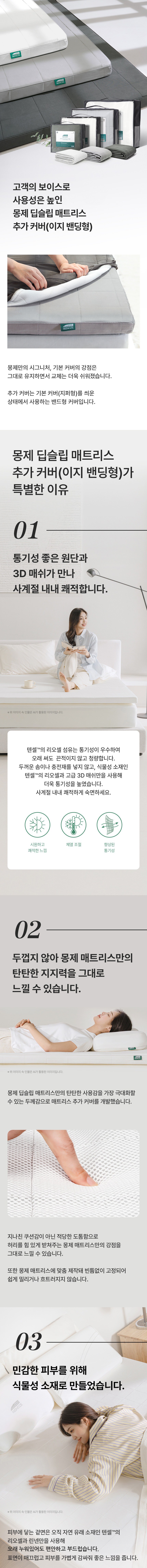 | 품명 및 모델명 | 몽제 딥슬립 매트리스 추가 커버 (이지 밴딩형) | KC 인증정보 | CB017R1144-4001 |