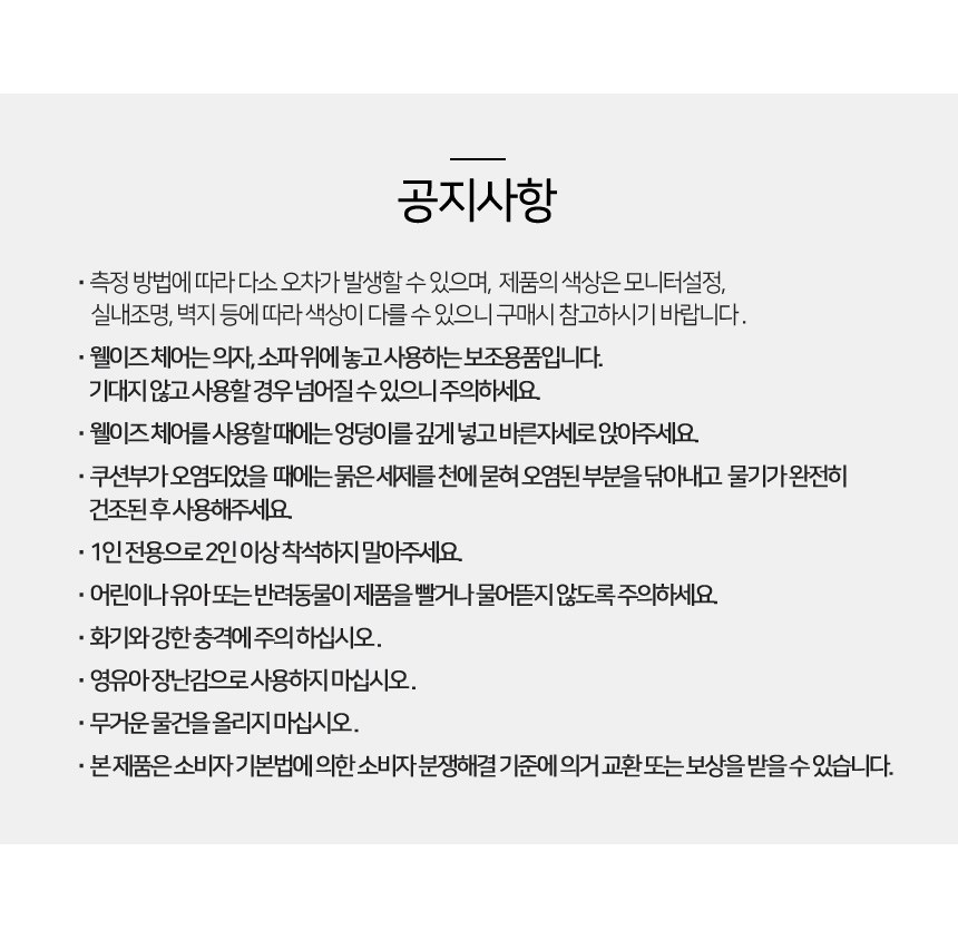 - ㆍ교환/반품에 관한 일반적인 사항은 판매자가 제시사항보다 관계법령이 우선합니다.