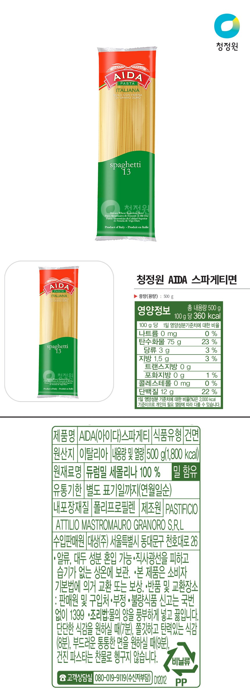 | 제품명 | AIDA(아이다)스파게티 | 식품의 유형 | 컨텐츠 참조 |