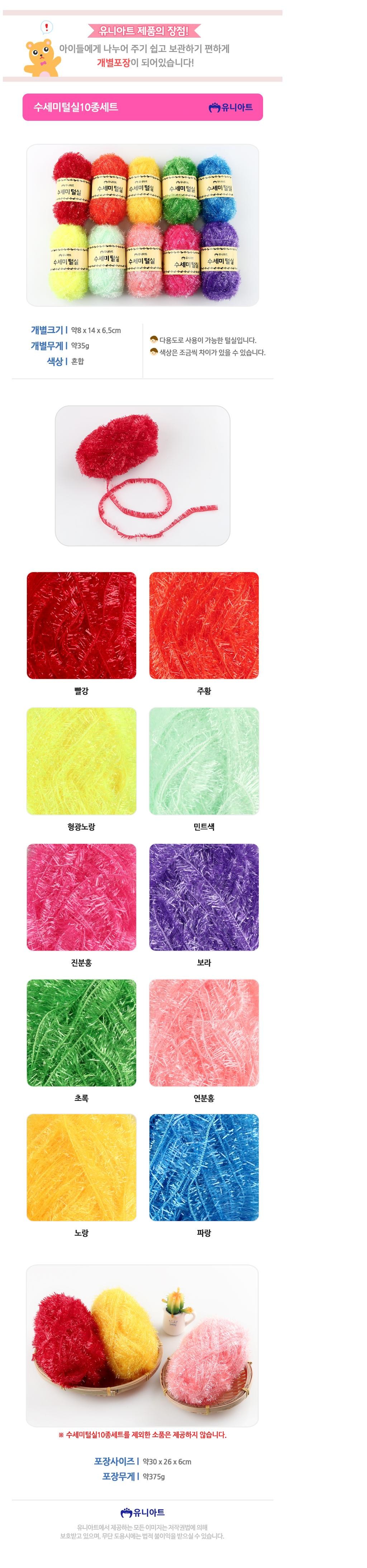 | 품명 및 모델명 | 유니아트 수세미털실 10종 세트 | 인증/허가 사항 | 해당없음 |
