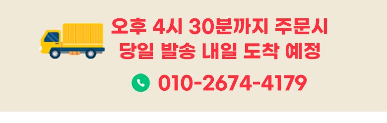| 배송기간 | ㆍ도서산간 지역 등은 배송에 3-5일이 더 소요될 수 있습니다. - 천재지변, 물량 수급 변동 등 예외적인 사유 발생 시, 다소 지연될 수 있는 점 양해 부탁드립니다. | ||